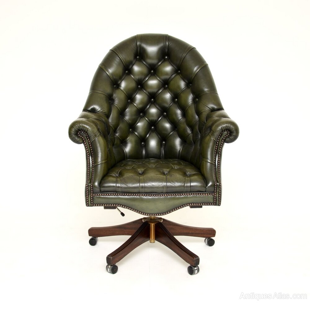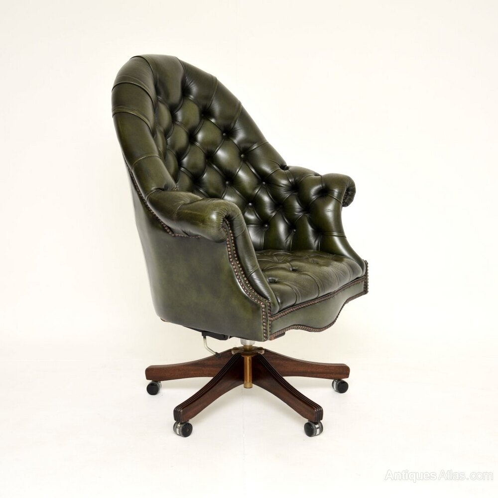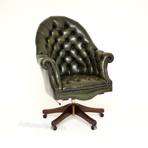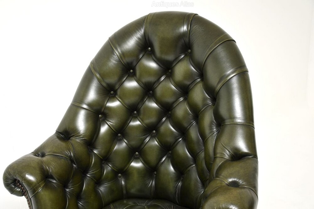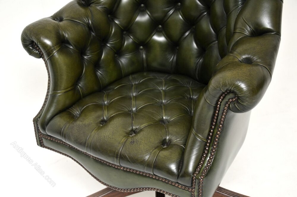 A smart and extremely well made antique Victorian style leather swivel desk chair. This was made in England and dates from around the 1960’s.