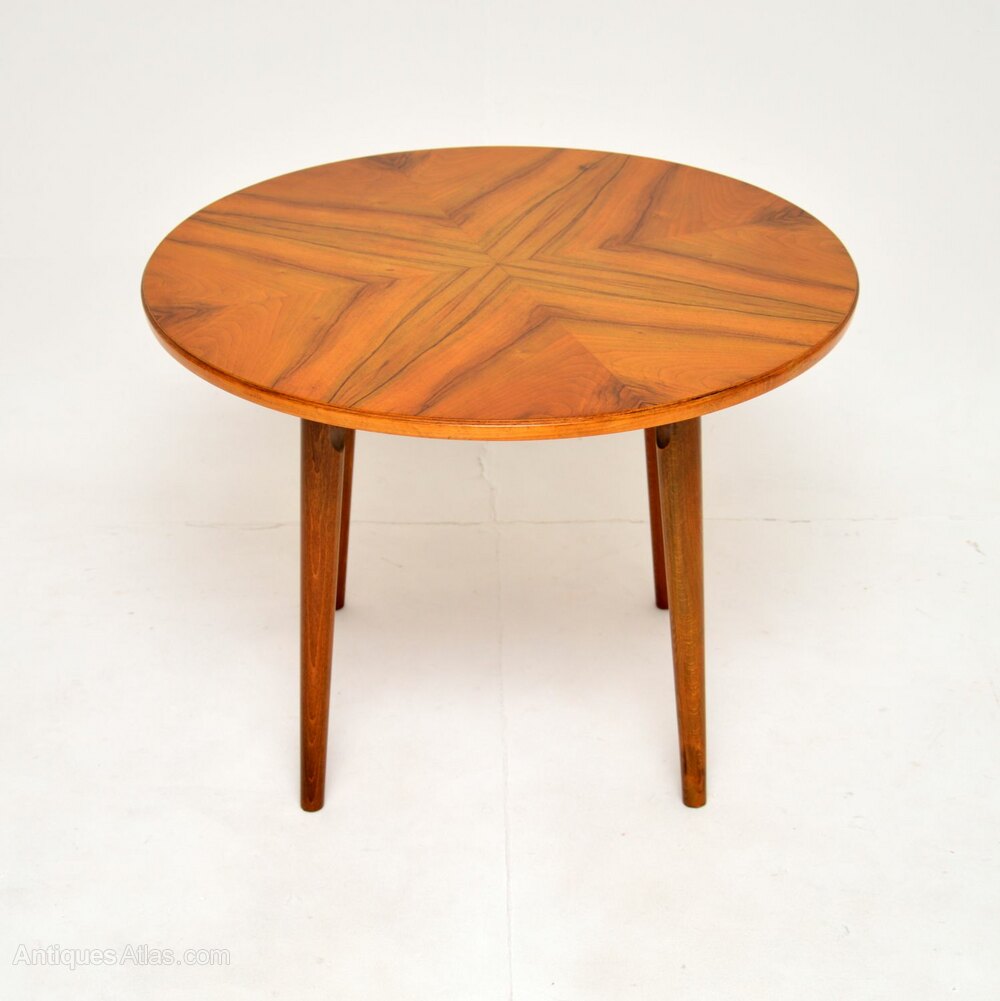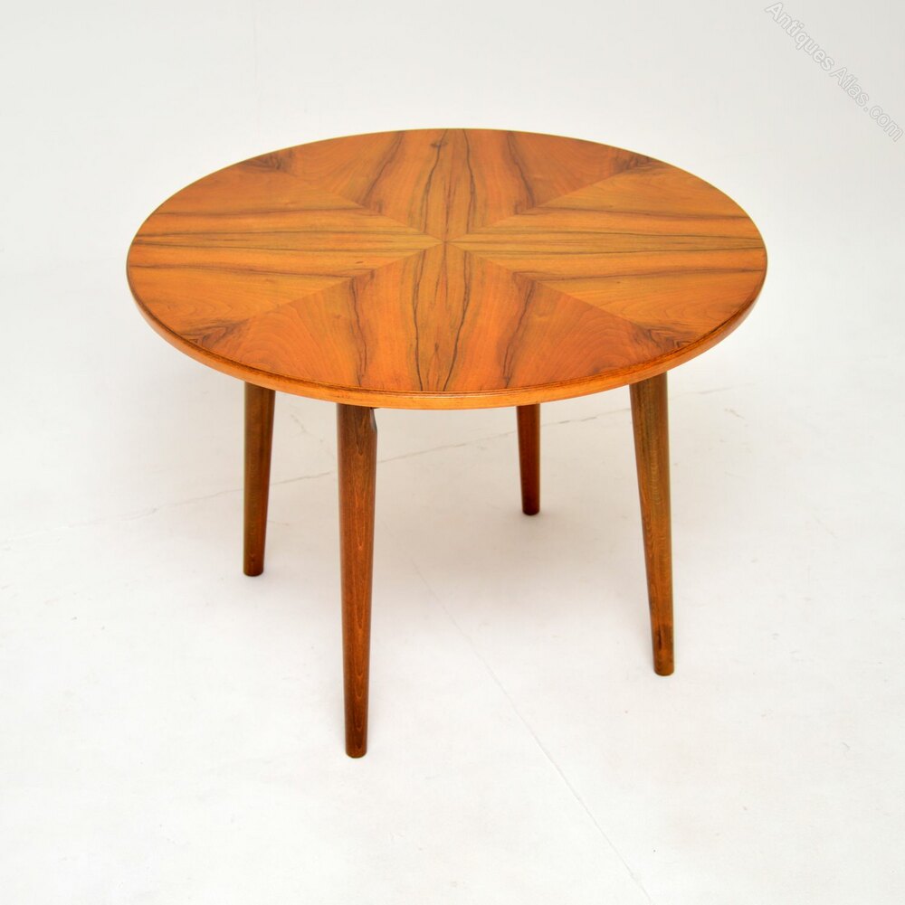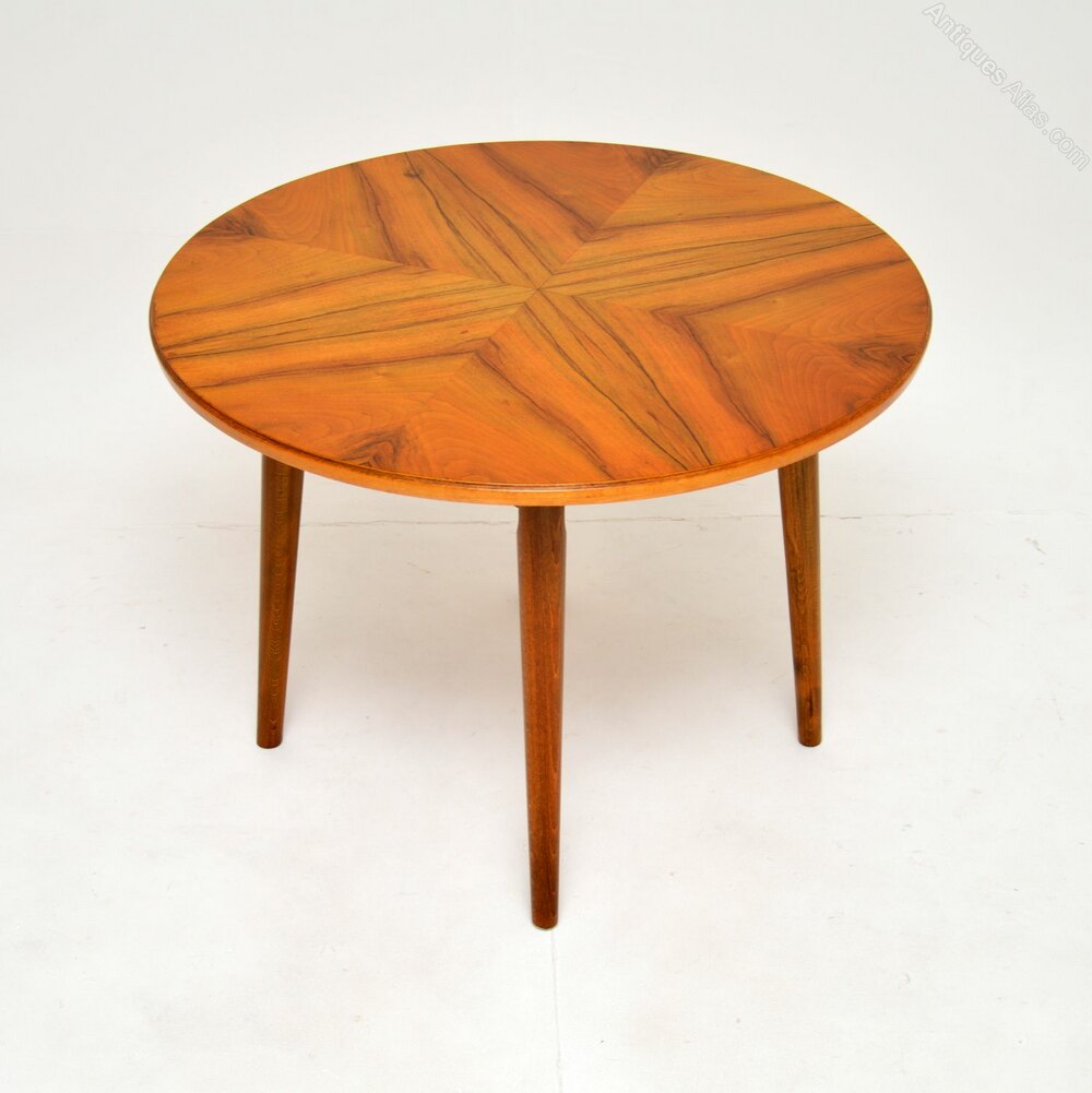 A stylish and very well made vintage coffee / side table in walnut. This was made in England, it dates from around the 1950’s.