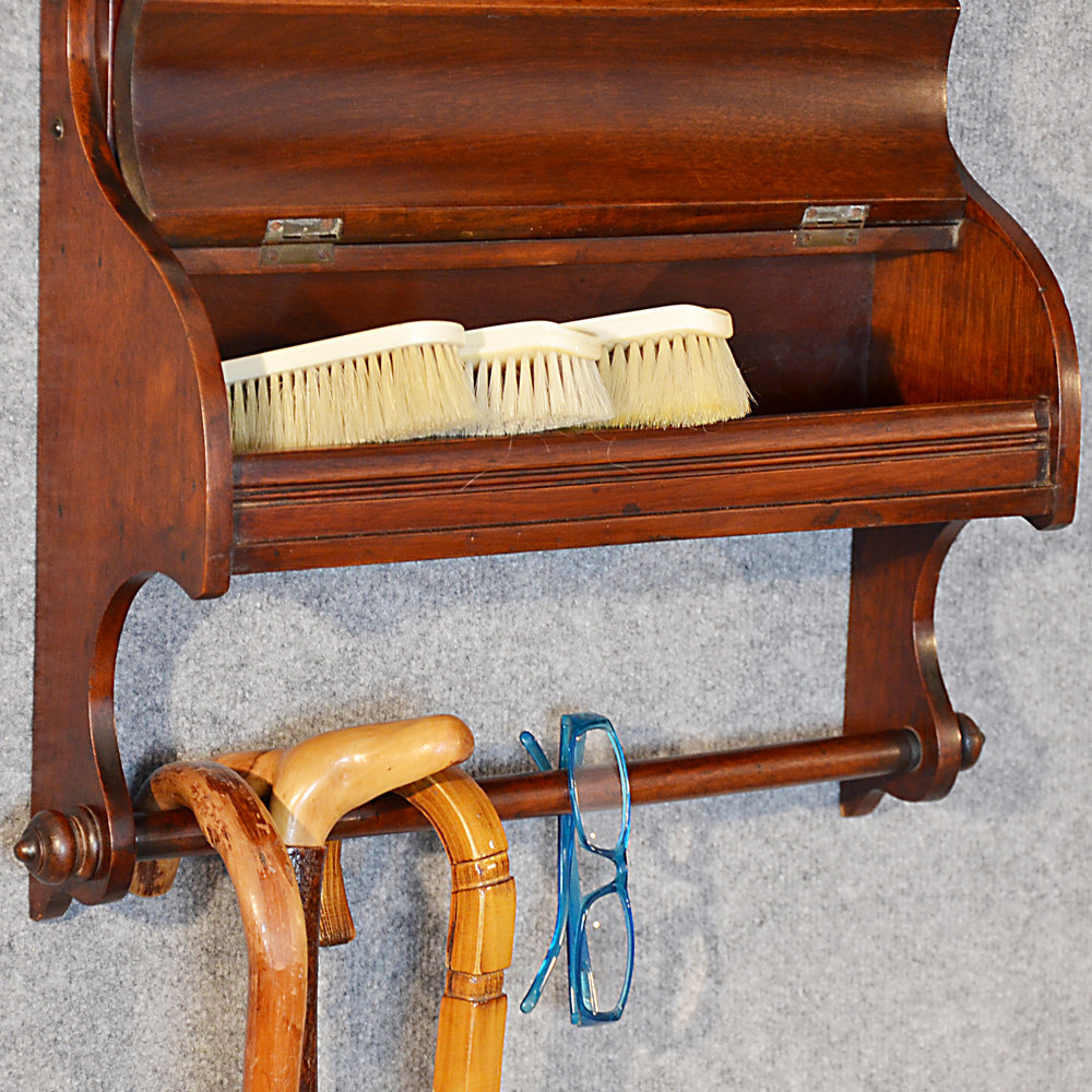Superb Victorian Wall Mirror - Barrel Glove Valet Box & Rail - c1870