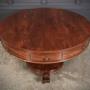 This handsome and substantially sized piece features a finely polished circular mahogany top, showcasing the rich grain and depth of colour. Around the frieze are a total of eight drawers—four functional and four dummy drawers—providing symmetry and aesthetic balance. Each drawer is adorned with cockbeaded fronts, oak linings, and retains its original brass locks with turned wooden handles.