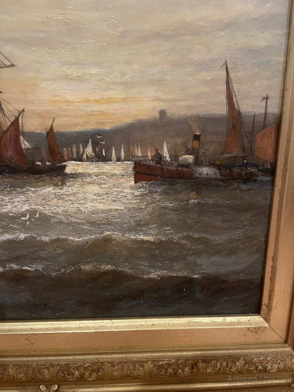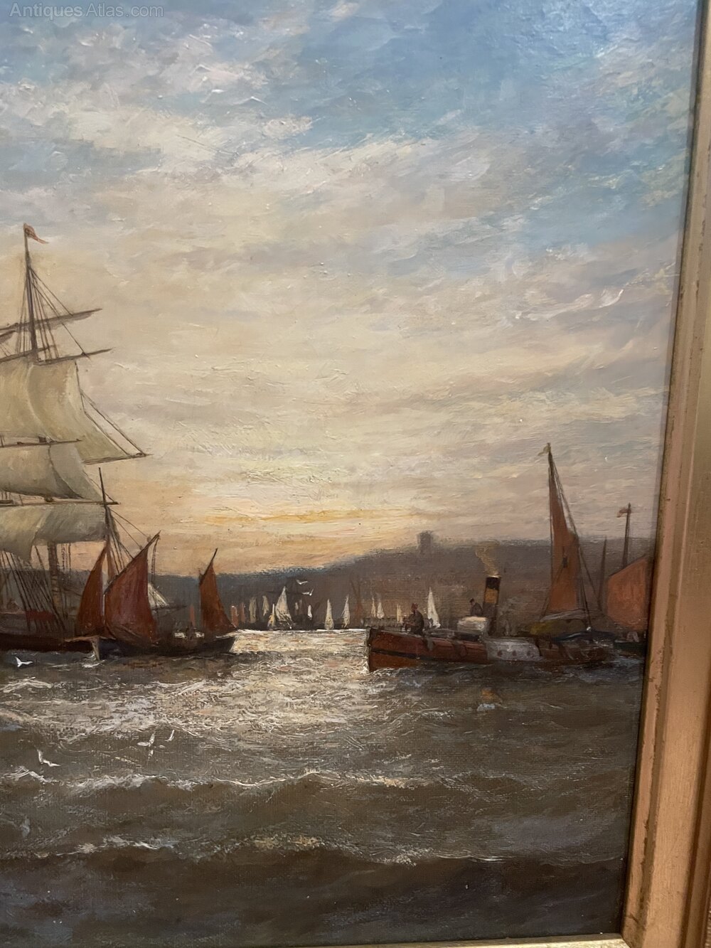 William Thornley - Sunrise on the Tyne. Signed lower left.