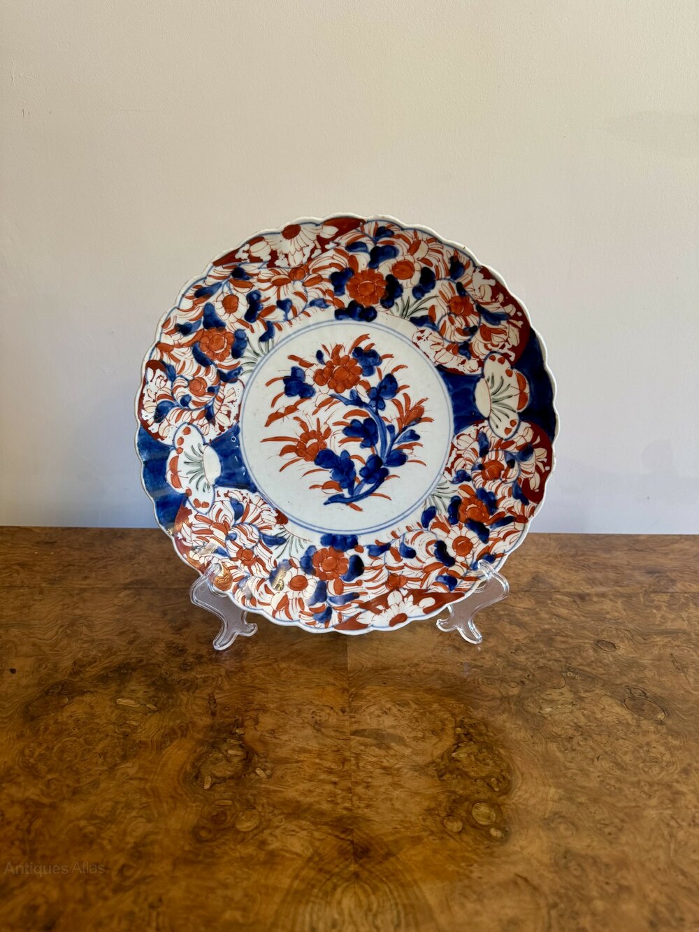 Wonderful quality antique Japanese imari plate, having a quality antique Japanese imari plate decorated with flowers to the centre surrounded by panels with flowers and scrolls hand painted in red, blue and white colours.