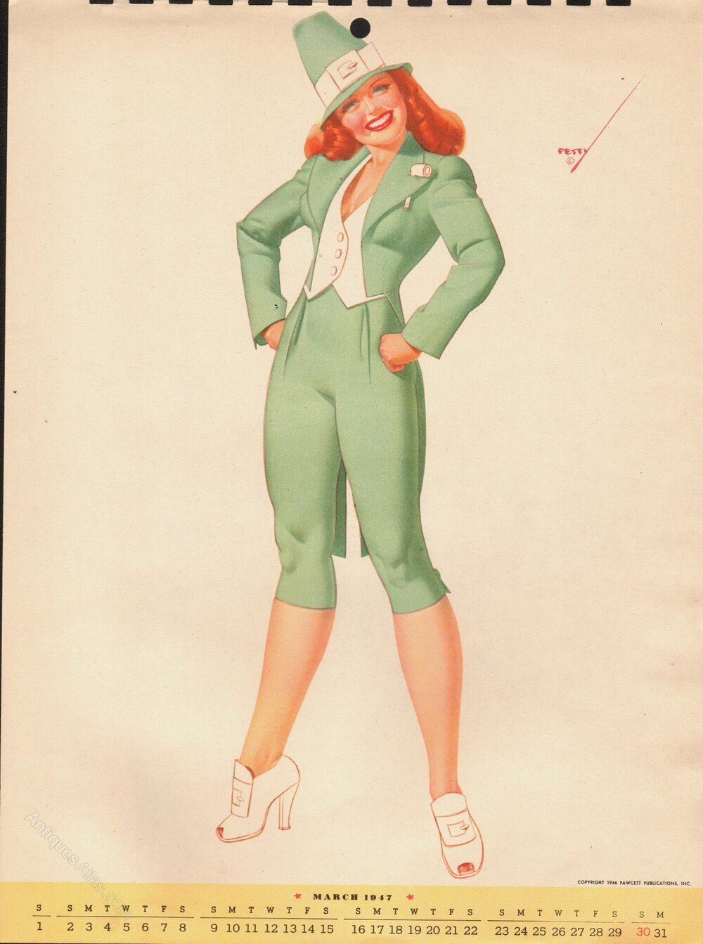 ORIGINAL GEORGE PETTY AMERICAN 1947 MARCH CALENDAR GIRLPRINTED SIGNATURE TOP RIGHT
