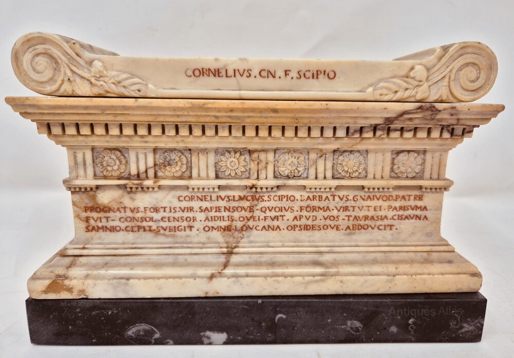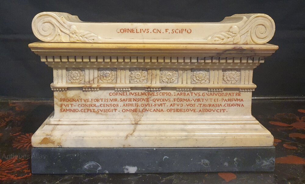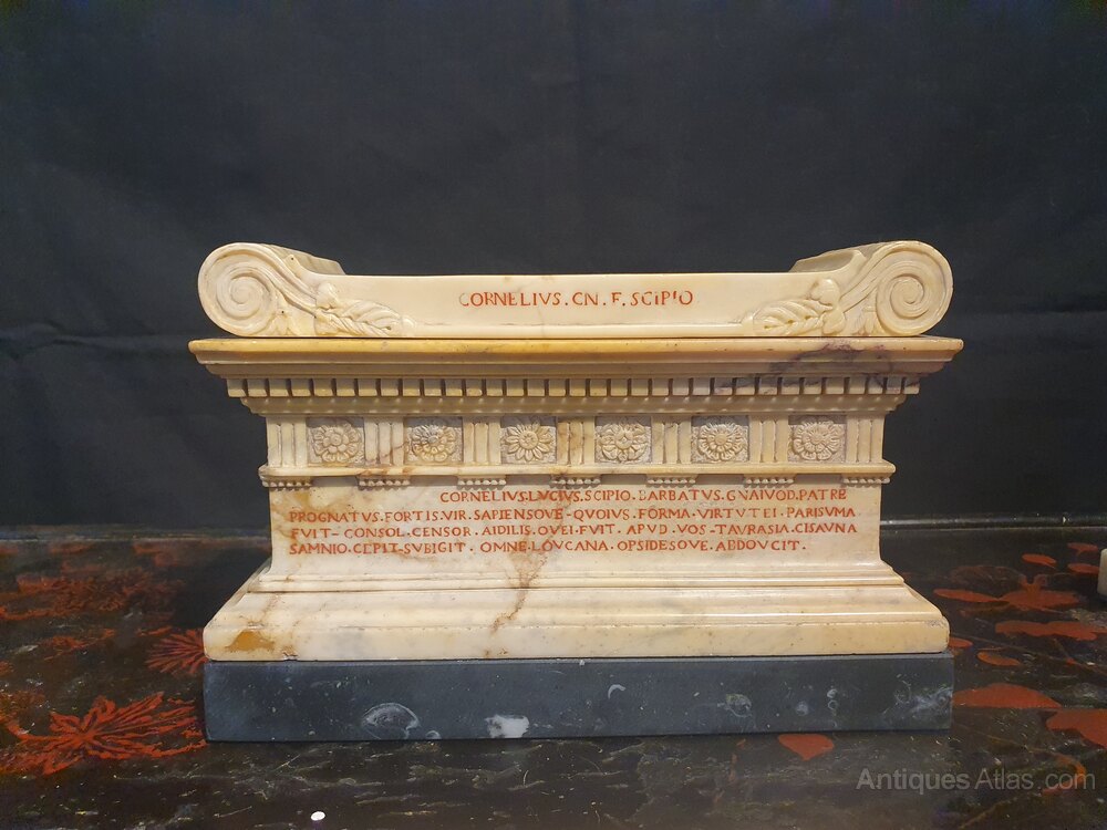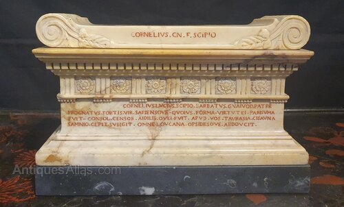 A Grand Tour 19th cent. Model of Scipio’s Tomb. Carved in Giallo antico marble. Dimensions of the marble base are 21 cms wide, 7 cms deep, overall height 13.5 (incl base).Preferred method of payment is by bank transfer (UK faster payment or to our €Euro account) which incurs no additional costs or charges.