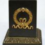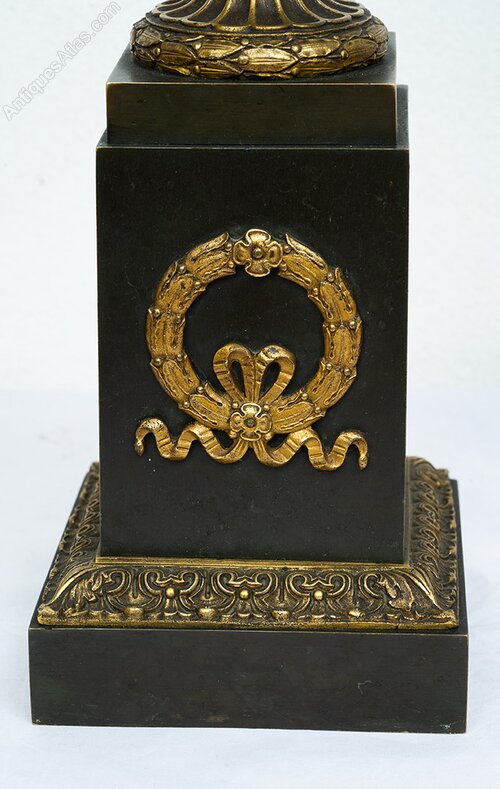The base is composed of a skillfully chased patinated bronze quadrangular section resting on a gilded square base.