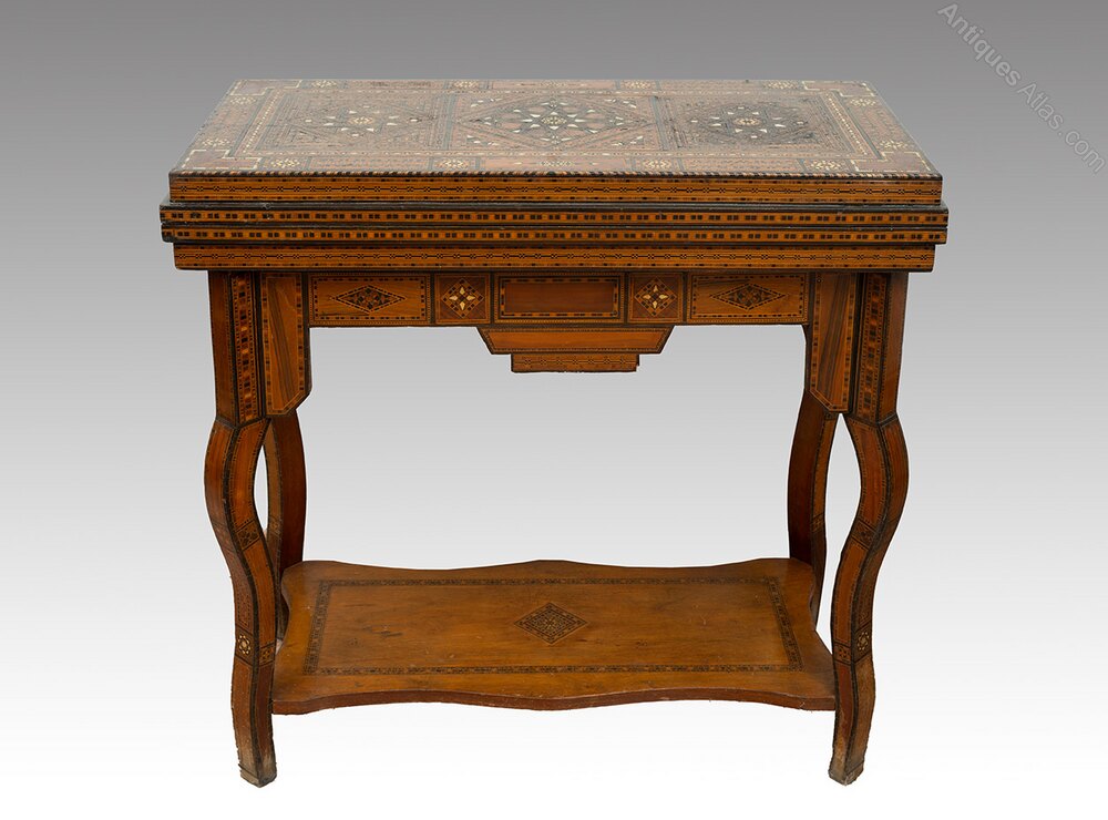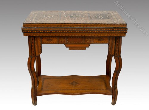 Polychrome Wood Gaming Table With Mother-of-pearl