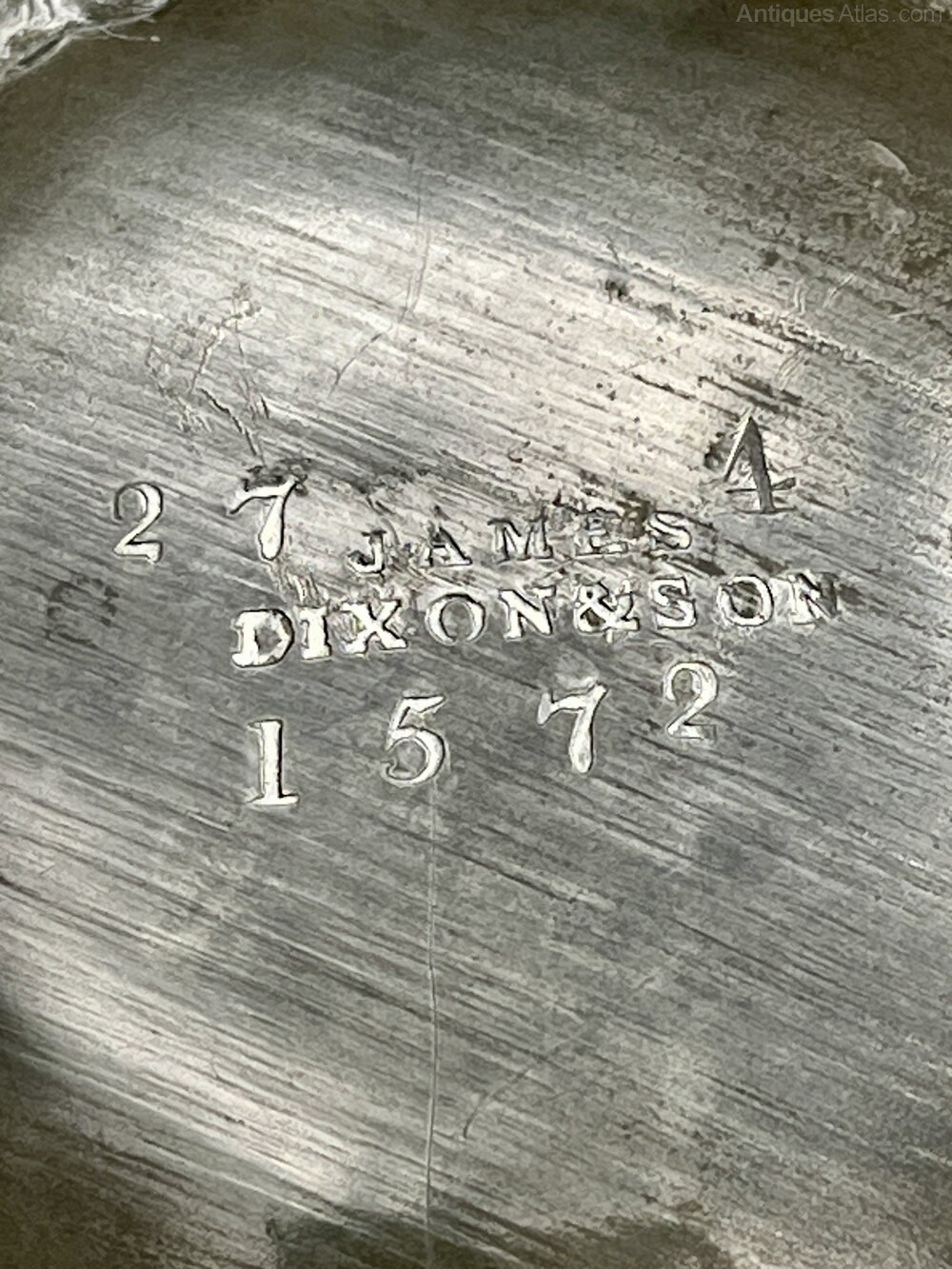 The underside of the base is stamped James Dixon & Son, which, along with the design, gives us our date range of around 1830 to 1835.