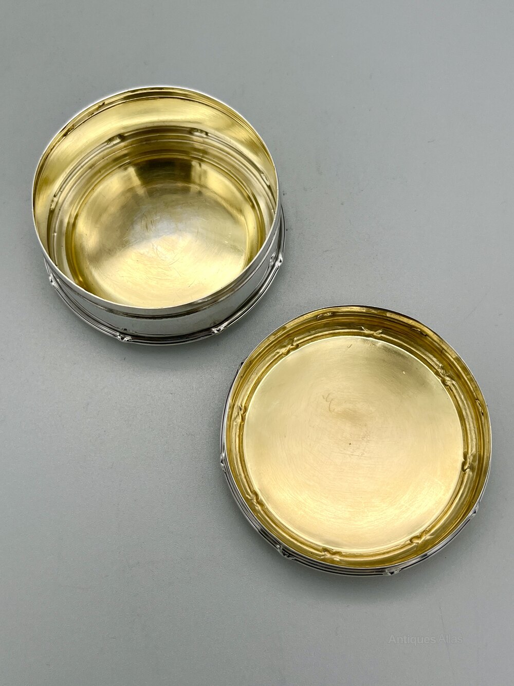 The box is 6.1cm / 2.4ins in diameter and stands 3cm / 1.2ins high. It weighs in at a very respectable 52.6g / 1.85oz of solid Sterling Silver.