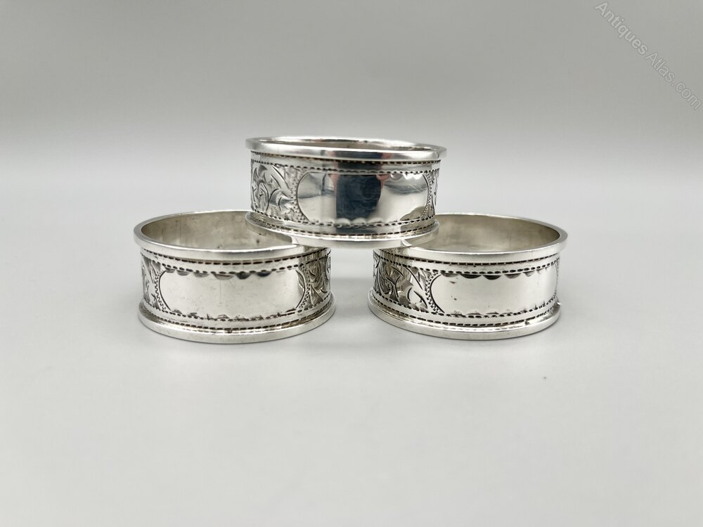 3 x George V Silver Napkin Rings, John Rose, 1919