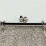 The evening bag is 11.2cm / 4.4ins by 10cm / 3.9ins and the drop from the top of the handle to the bottom of the bag is 27.7cm / 10.9ins. It weighs in at a very respectable 76.7g / 2.7oz.