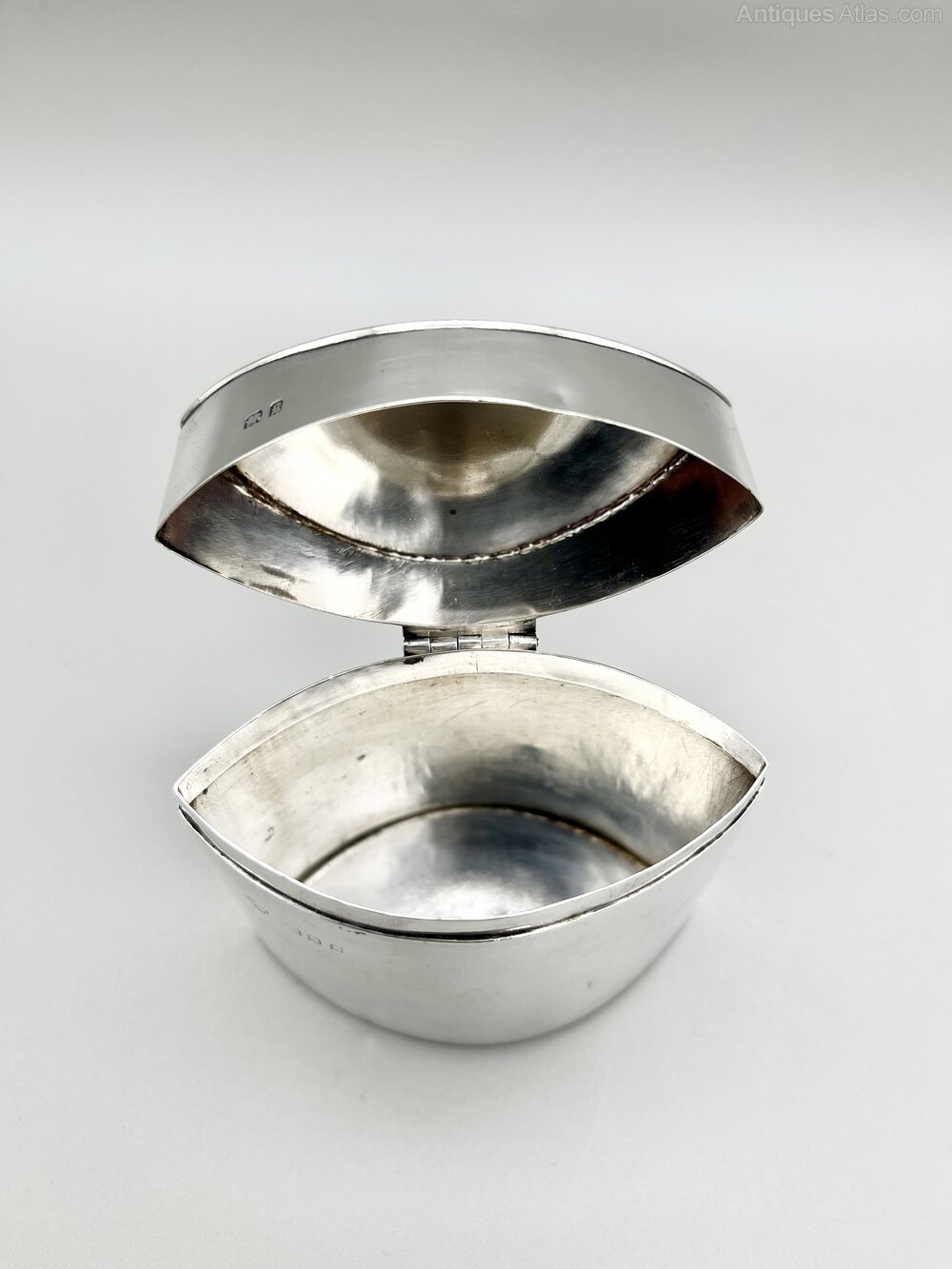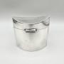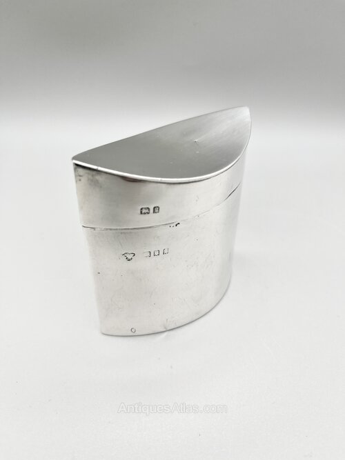 The caddy measures 7.2cm / 2.8ins by 3.9cm / 1.5ins and stands 6.9cm / 2.7ins high. It weighs in at a very respectable 76.6g / 2.7oz of solid Sterling Silver.