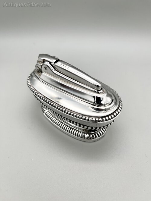 This is an elegant Vintage Silver Plated "Queen Anne" Table Lighter. The lighter is oval with a silver plated part reeded and beaded base. The lighter can be removed from this using the screw on the underside for filling, changing flints etc.The lighter was made in Surrey, England by Ronson as part of their Varaflame range and dates to around the 1960s/70s. The "Queen Anne" was a very popular model at the time and is now widely collected.