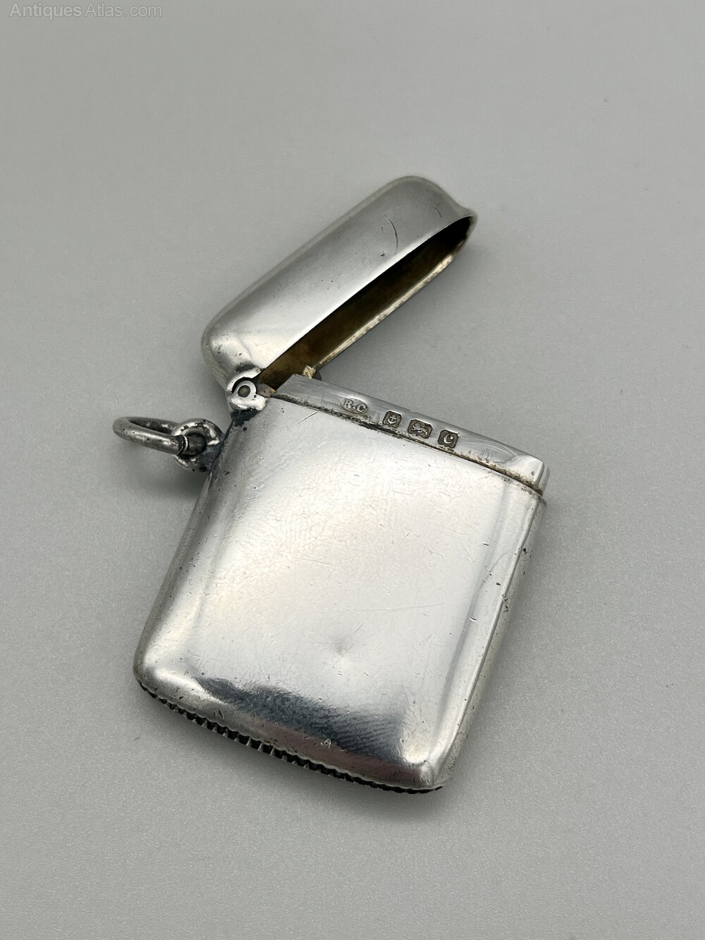 The vesta case measures 4.1cm / 1.6ins by 3.1cm / 1.2ins and weighs in at a respectable 21.8g / 0.77oz of solid Sterling Silver.