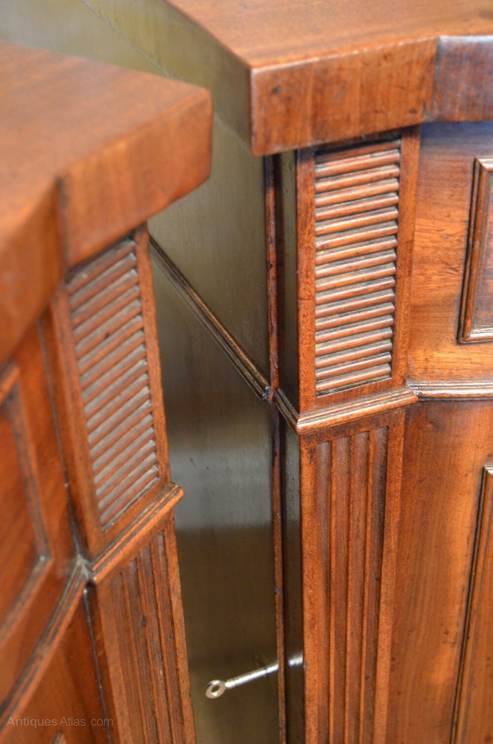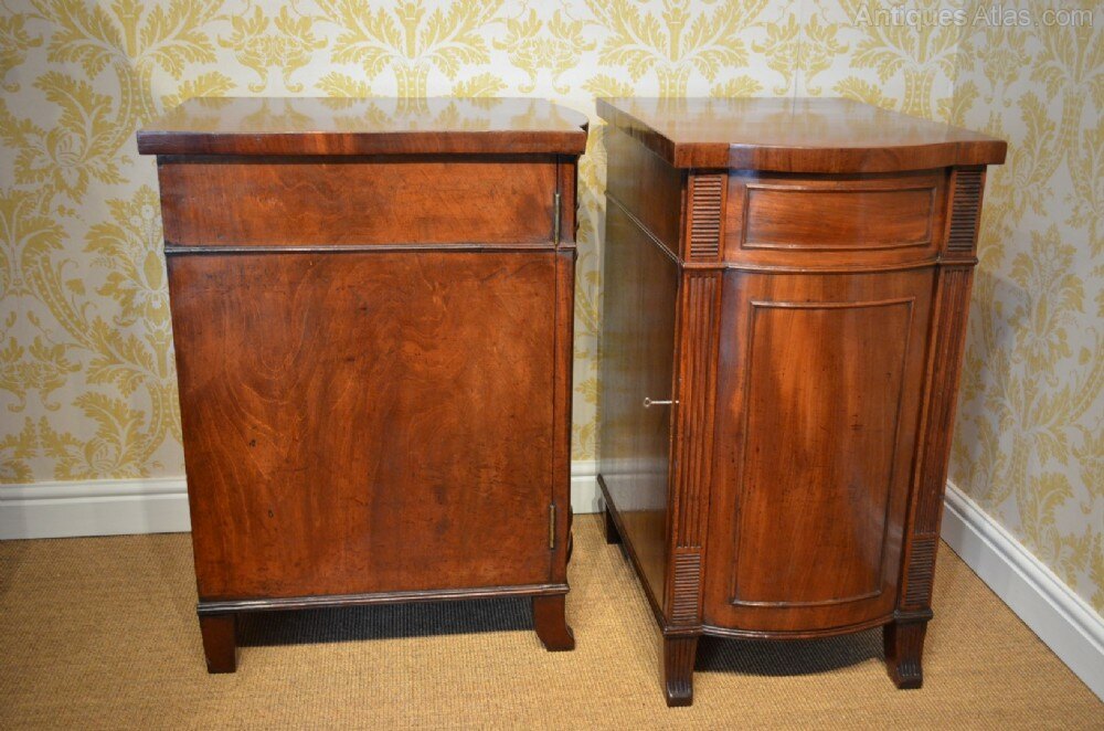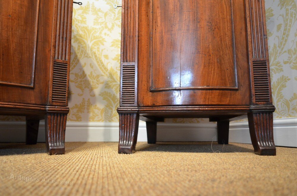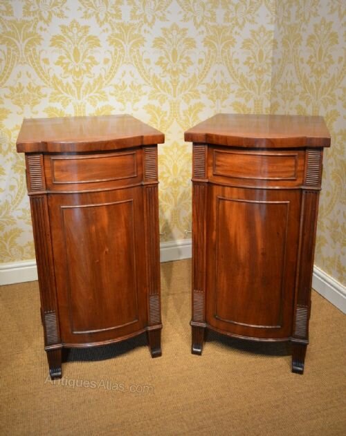 A Pair of Regency Mahogany Pedestal Cabinets,The Bow fronted pedestals with reeded detail and raised on short sabre supports.