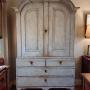 Fabulous Swedish Rococo Period Painted CabinetThe two-door arched bonnet top, rests above a two over two, four drawer base, supported by curved cabriole legs.