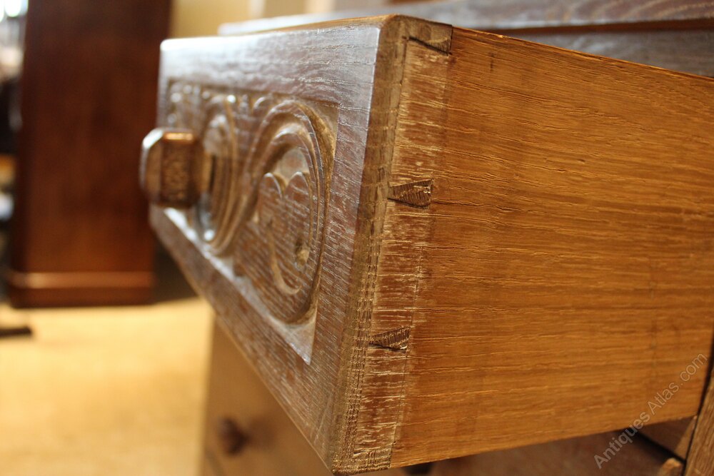 Here we have a stunning Arts and Crafts Limed Oak chest of drawers c1900 by Heaton Tabb and Co Liverpool and London. Labelled in the top drawer. Heaton Tabb & Co. Ltd. was a British company, primarily a cabinet maker and decorator, known for its fine furniture and interior design work, particularly during the 19th and 20th centuries. The company was a subsidiary of the shipbuilder Harland & Wolff Ltd. and was responsible for fitting out the interiors of famous ocean liners, including the Titanic, Olympic, and Oceanic. Items made by the company are now sold at antique auctions, as they are often valuable collector's pieces. The quality of this companys work is relected in this chest being made from solid English Oak with a beautiful limed finish. The chest is very much in the style of Heal and Son or Liberty. There is a shallow gallery back and super grain to the plank top. The top two drawers have well carved fronts and the rest are plain but quarter sawn showing off the medullary rays within the Oak grain. The side supports extend to the floor making for stile feet. The drawers are oak lined with hand cut dovetail joints and original Cotswold style handles. A super period chest of drawers in excellent retail condition ready for your home. The dimensions are approx 102 cm high 92 cm wide 48 cm deep.Buy from a trusted LAPADA dealer