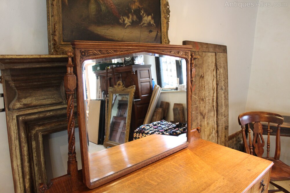 Here we have a wonderful solid English Oak dressing chest of drawers by Shapland and Petter of Barnstaple c1900. As you can see the Oak has fantastic colour and patina. There is a well carved Oak mirror frame with foliage and Tudor roses. The mirror supports have outstanding twisted beaded columns and finials. The base has a quarter sawn top with moulded edge. The drawers retain their original handles and are all Oak lined. The Locks are all stamped S P and B for Shapland and Petter of Barnstaple. The whole sits on a well turned base. A super period item by a great maker in lovely retail condition ready for your home. The dimensions are approx 150 cm high 122 cm wide 56 cm deep.Buy from a trusted LAPADA dealer