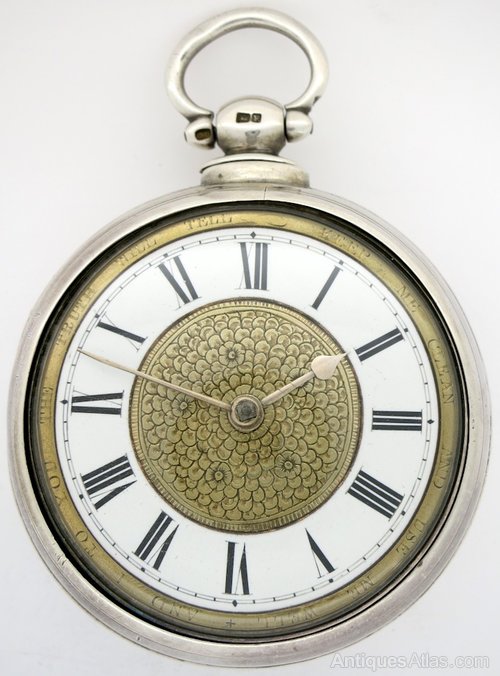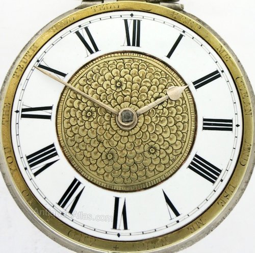 DIAL Wonderful enamel and gilt “Keep me clean” dial. This is in fine condition, which is very rare as these dials usually have at least one crack across the enamel chapter ring. The gilt rim is engraved with