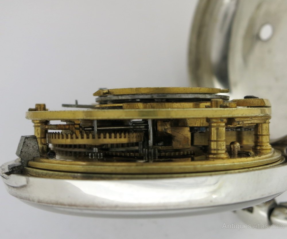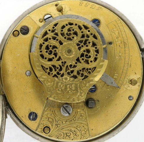MOVEMENT Gilt verge movement, with engraved and pierced balance cock. Unsigned but numbered (5388). Good condition and running well.
