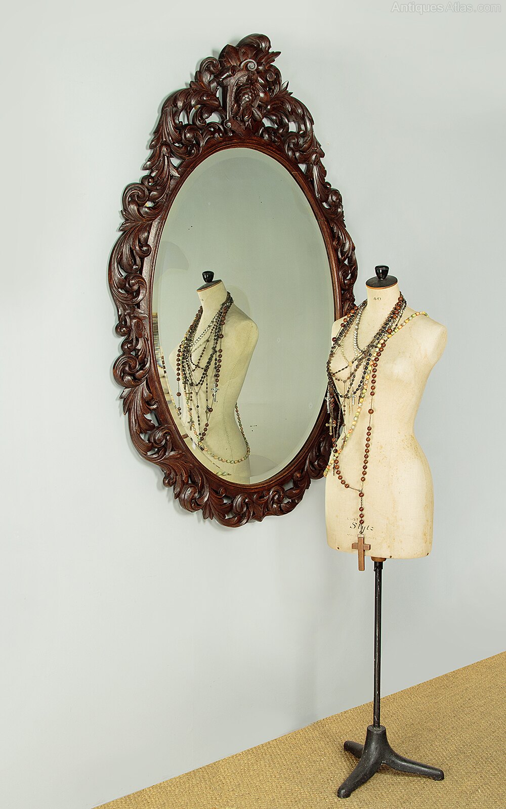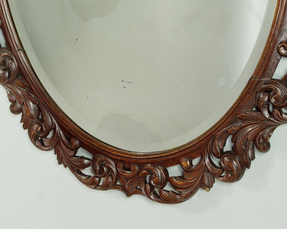 Oval Carved Oak Mirror c.1890
