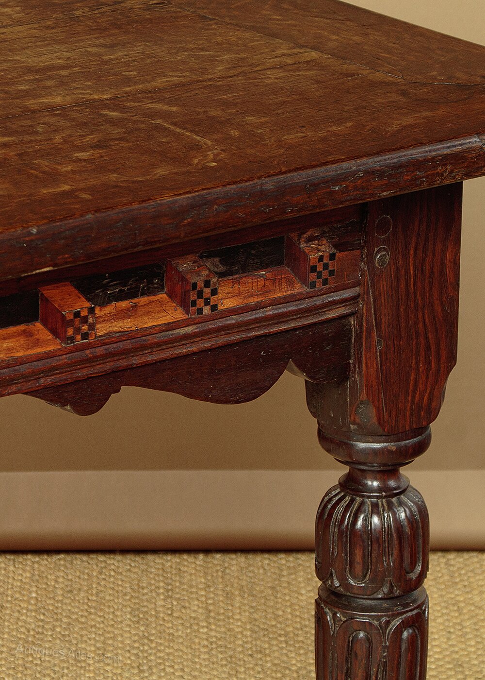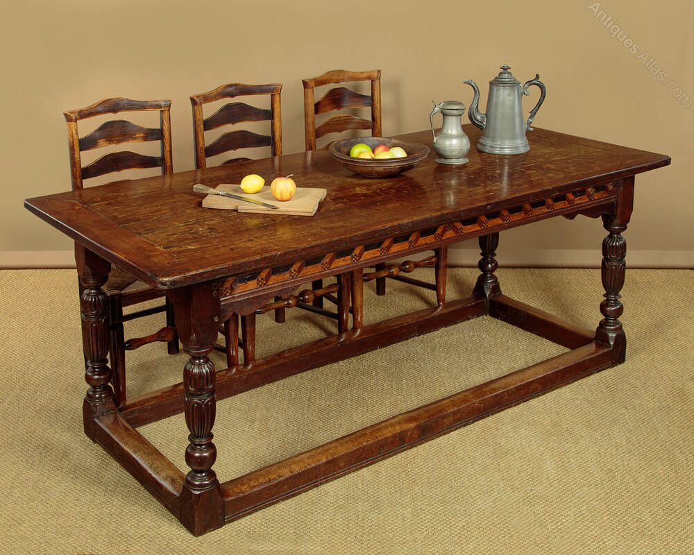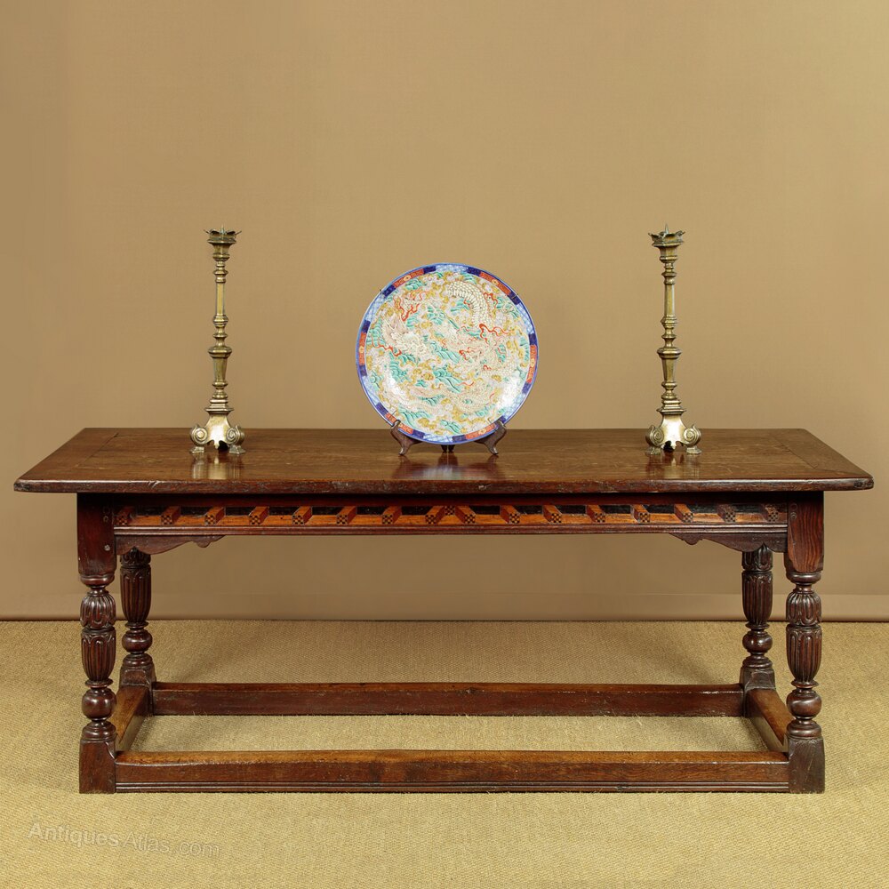17th.c. Oak Refectory Table with Inlaid Frieze