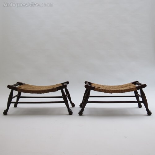 Pair of Antique Arts and Crafts Rush Seat Stools