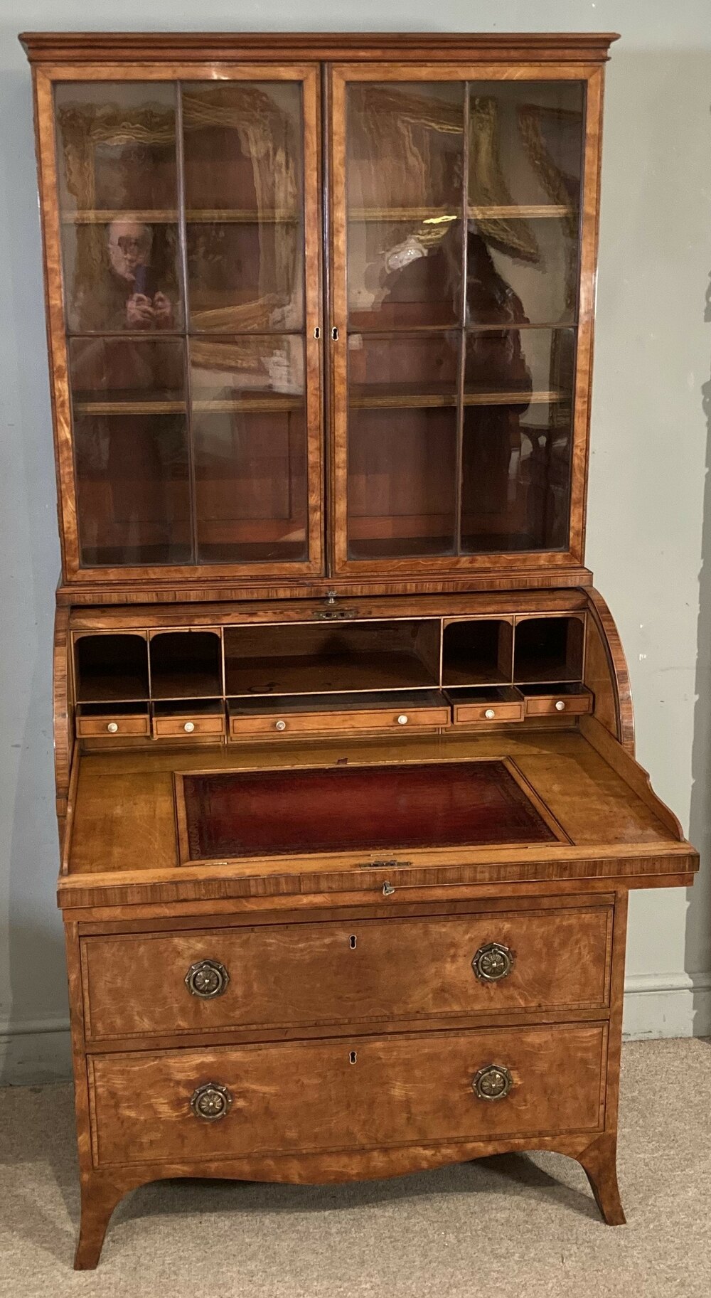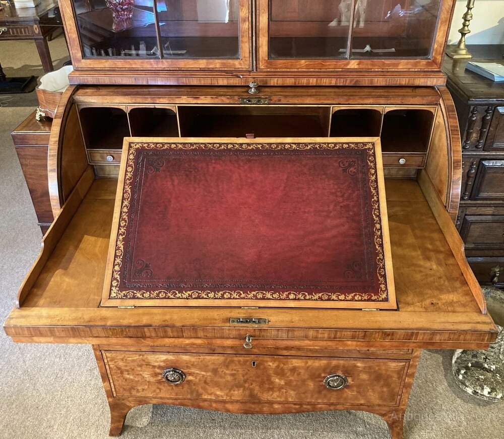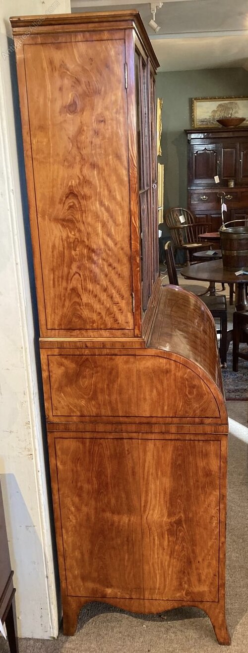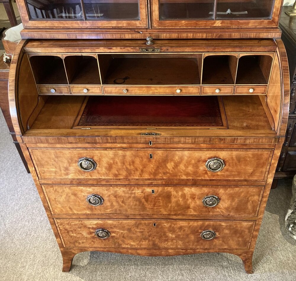 Geo III Satinwood Cylinder Secretaire Cabinet