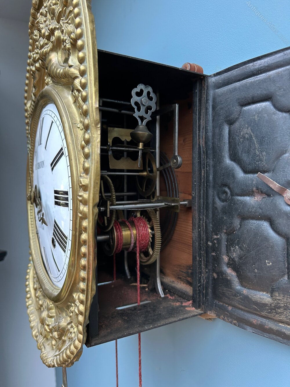 The Comtoise is a form of provincial, weight-driven clock originally made in the vicinity of Morbier in the Comté region of France near the Swiss frontier and were made from the late 17th century to the beginning of the 20th century. They are sometimes called Morez clocks or Morbier clocks, from place names in the area.They represented the first move towards the popularising of clocks in France, and in the 19th century they were to be found far and wide across the country, virtually ousting other local clock making traditions. They were often marked with the name and town of the vendor rather than those of the maker.