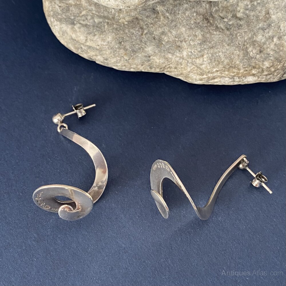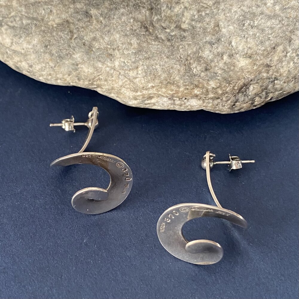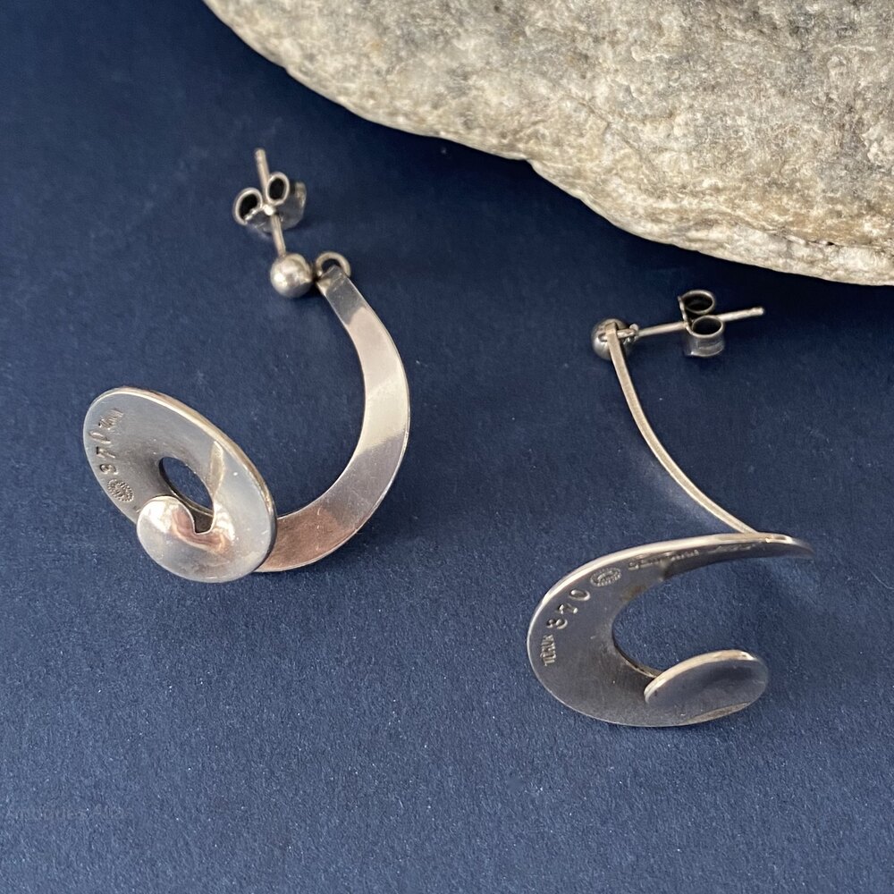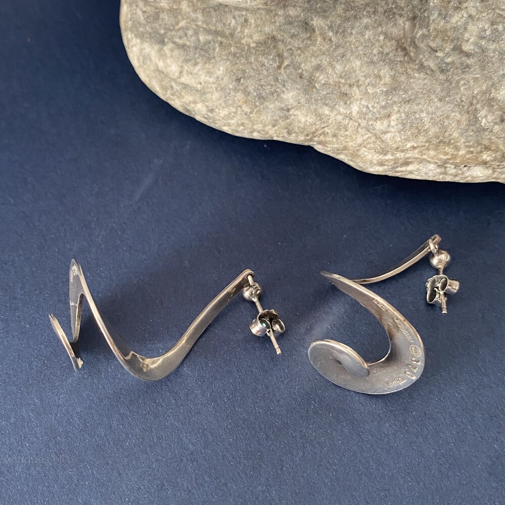 Georg Jensen mid century Danish silver Vortex earrings #370 designed by Vivianna Torun. In very good vintage condition.These Georg Jensen Vortex earrings are a 1960's piece and would make an excellent Christmas gift.