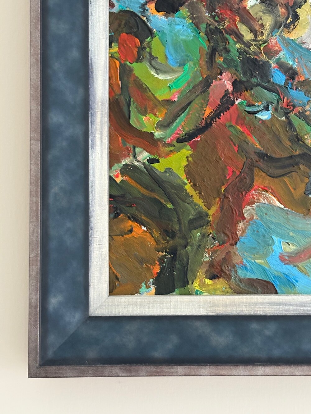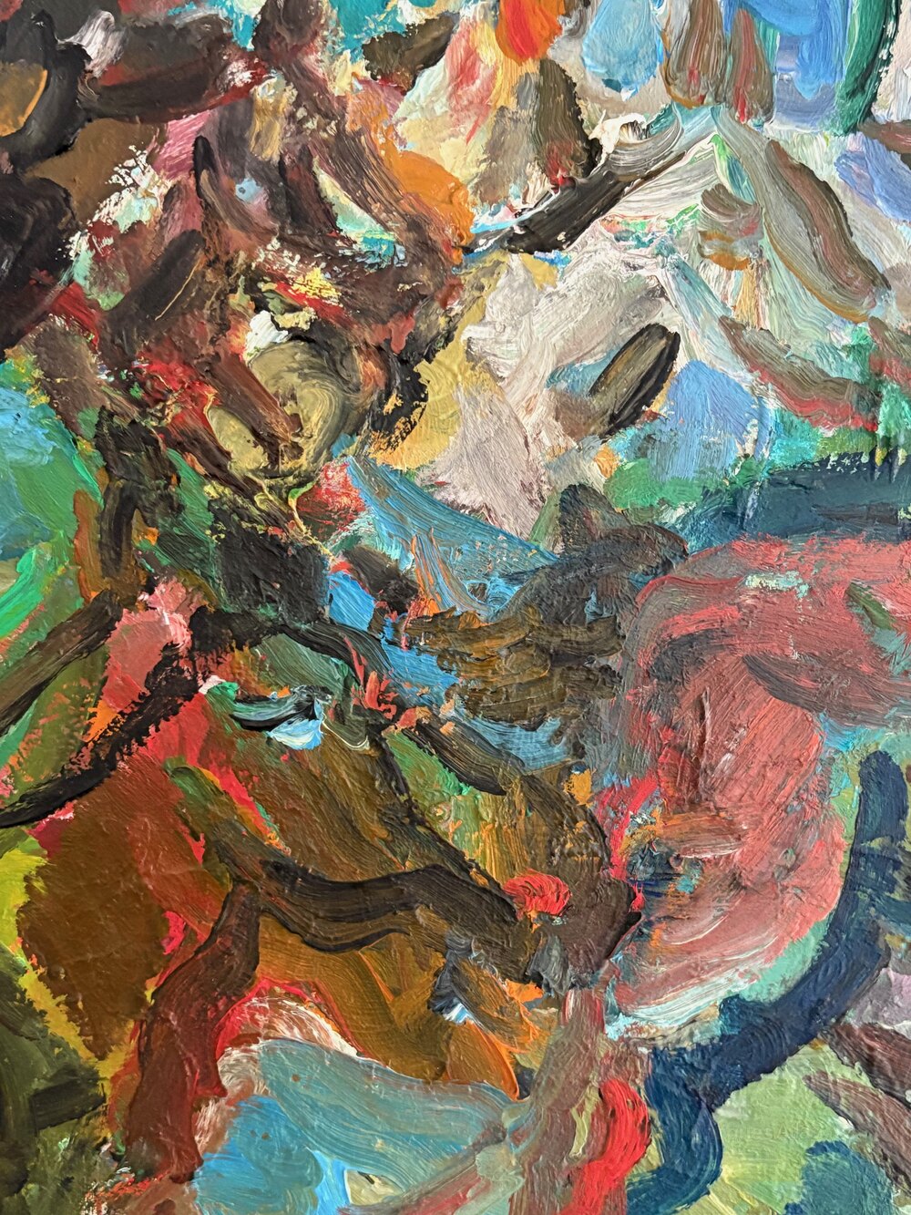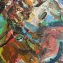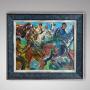 There is a confident spontaneity in this action packed painting, this is echoed in the bold signature in the lower right corner.