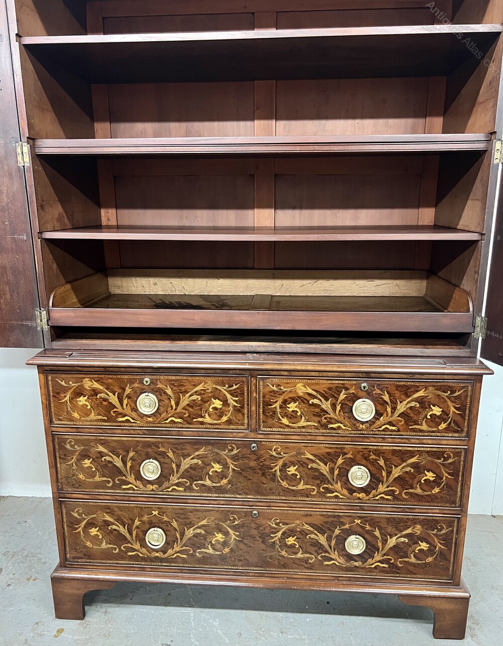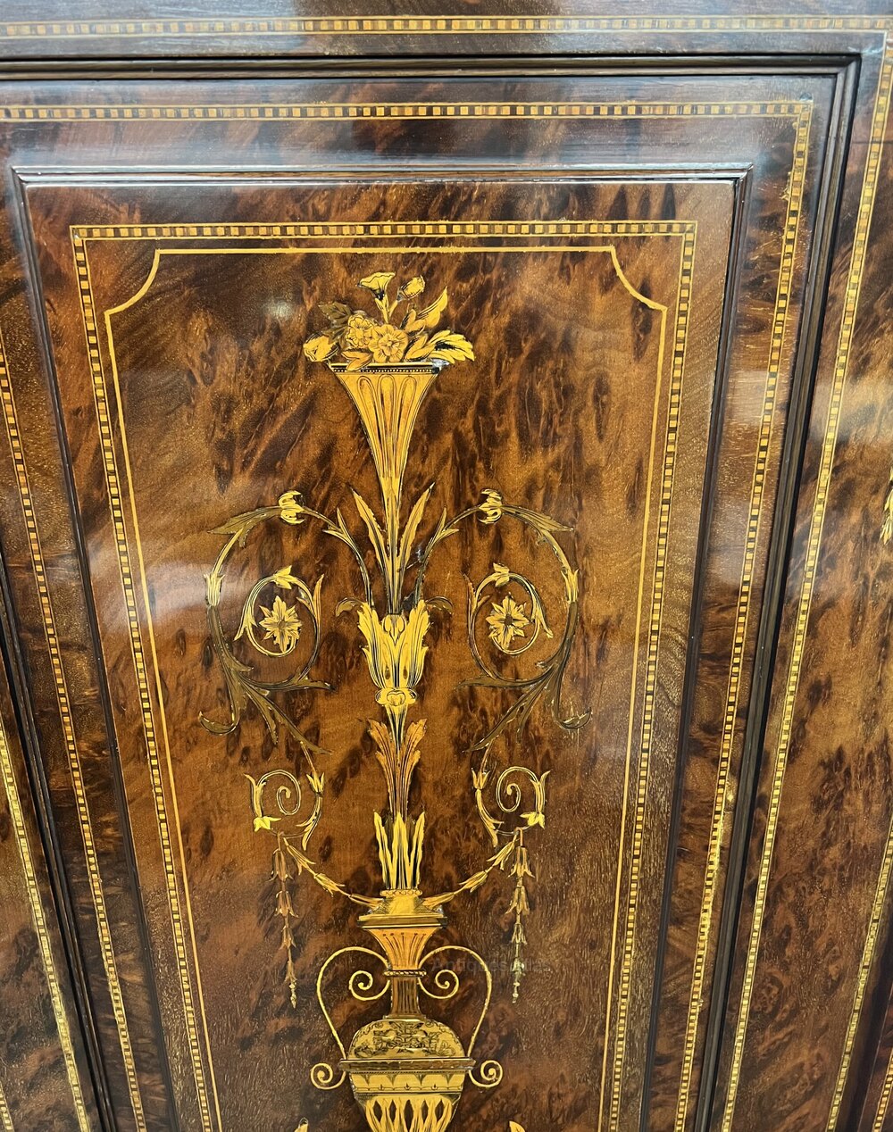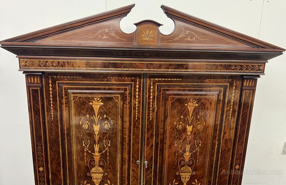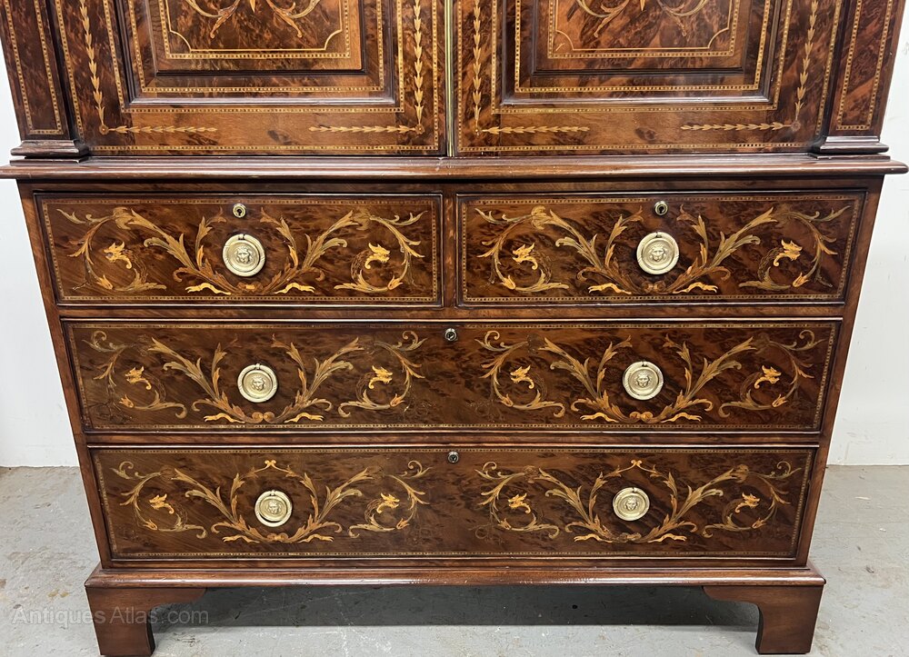 Stunning Antique Marquetry Inlaid Linen Press