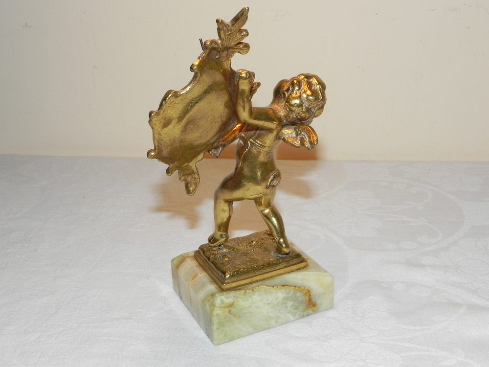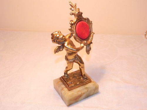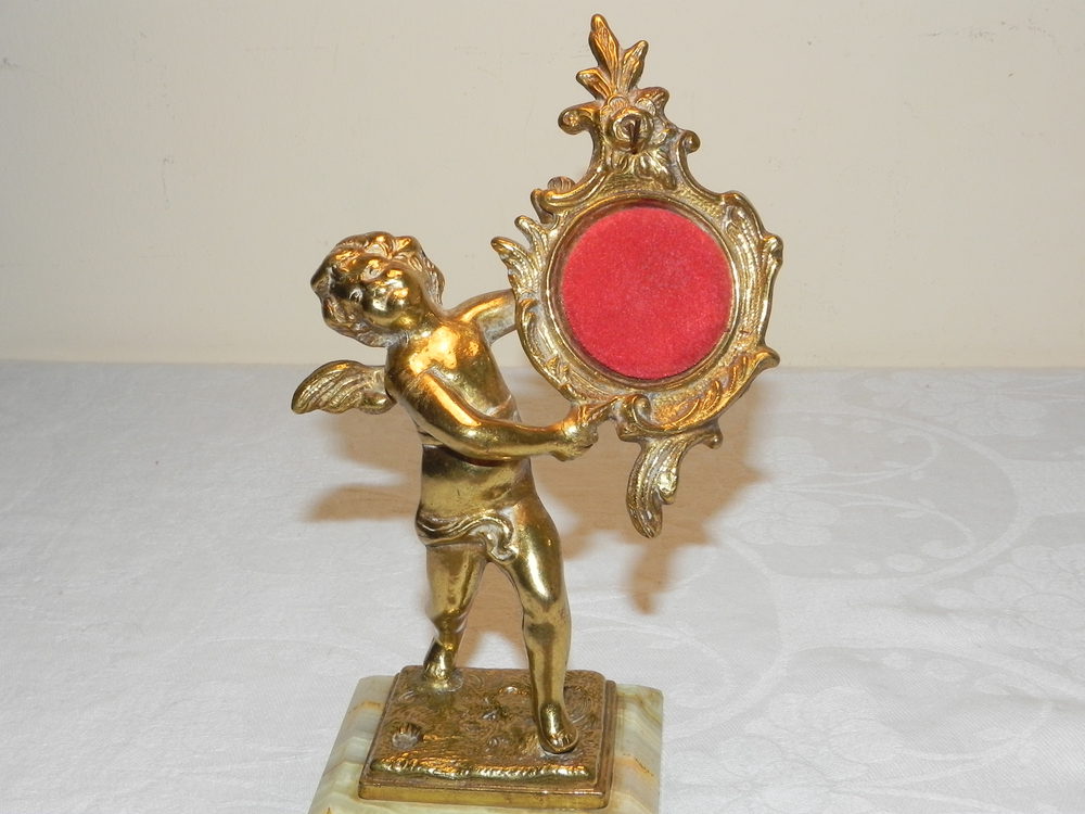 Vintage Brass & Marble Cherub Pocket Watch Stand