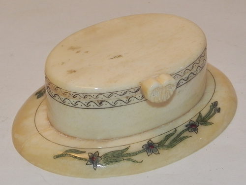 This is absolutely beautiful, a gorgeous, tactile ox bone box, all clasps and hinges perfect, it snaps together well, it is exquisitely decorated - the base measures 2.3/4" inch long on the oval and the top measures 1.3/4" inch, it opens to reveal a lovely clean interior - now whether this was originally a snuff or trinket/ring box I am unsure, but I do know that it is exceptional and will not disappoint - it would certainly prove a wonderful and unusual presentation box for a special ring. A lovely vintage c. 1900 piece that will delight the most discerning of buyers!.DateLate Victorian :