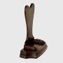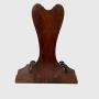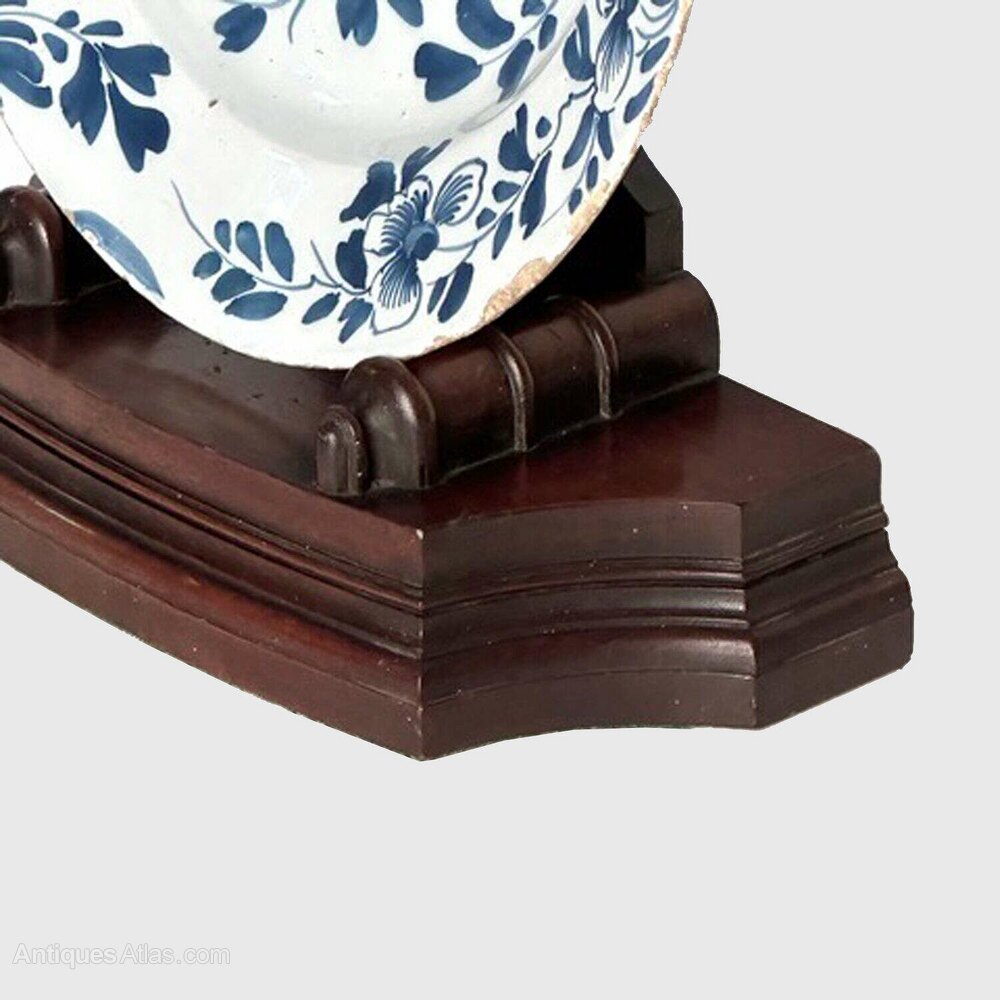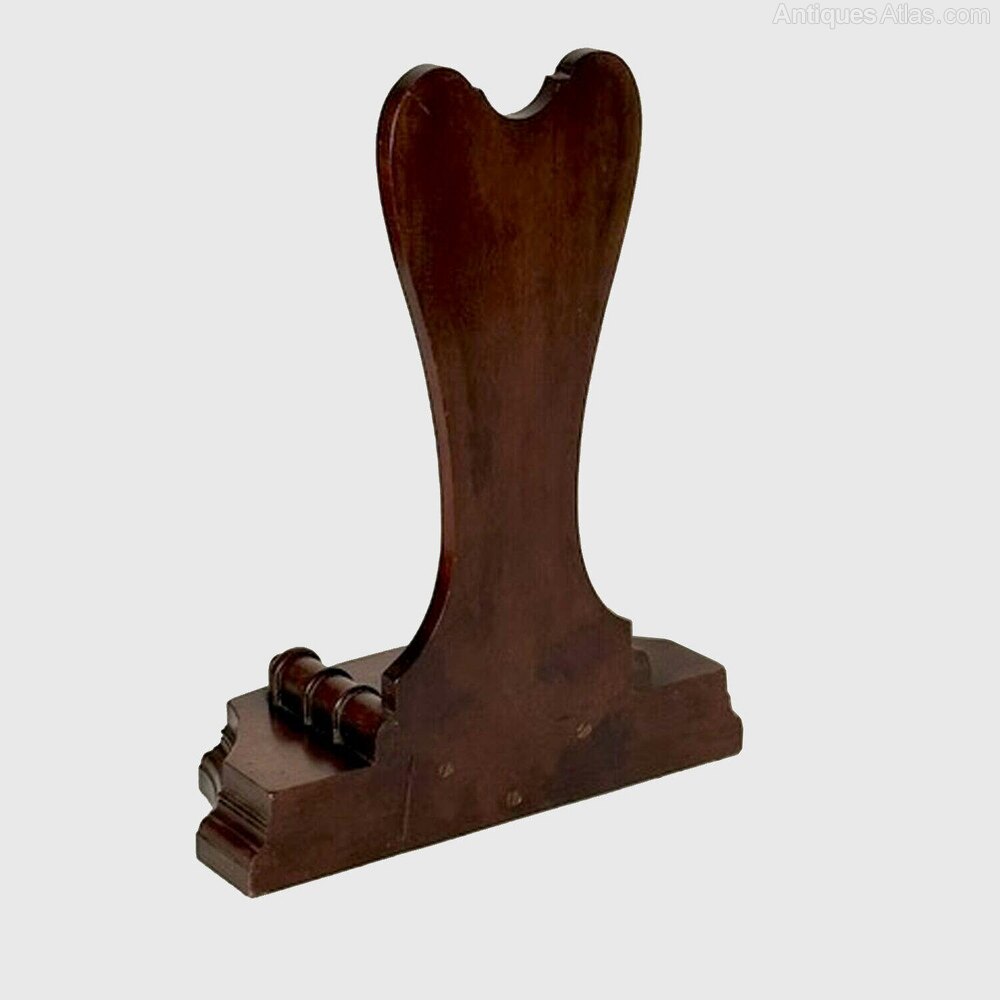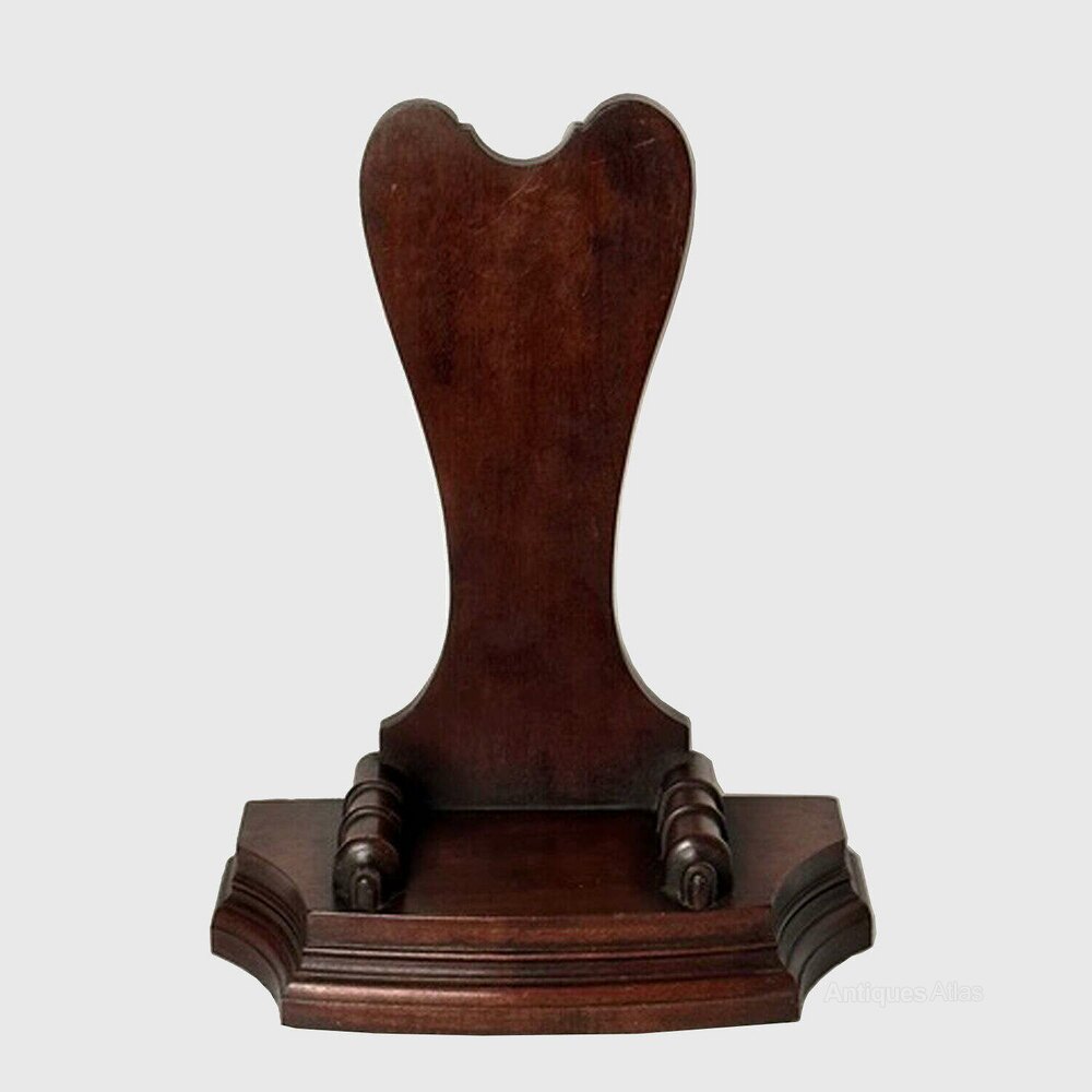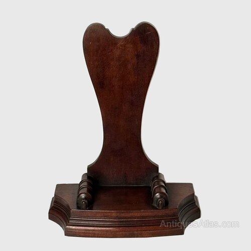 Georgian mahogany plate or tray stand. Stepped bow front and concave base with tall spoon back stand to support either trays or chargers. English circa 1800Shipping information