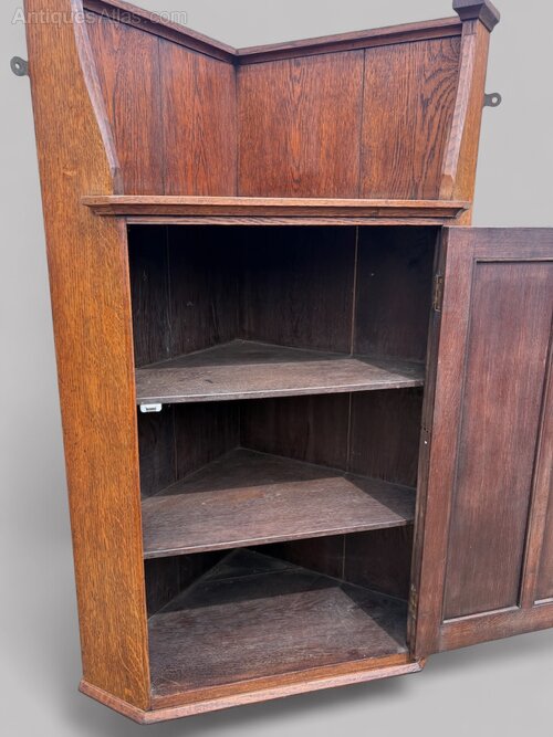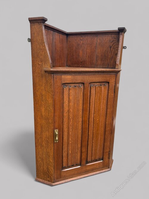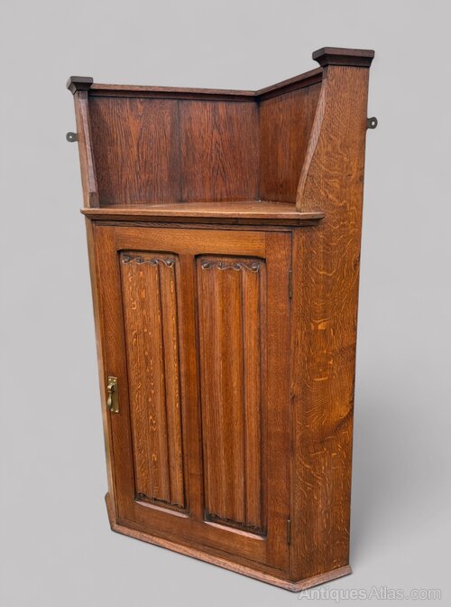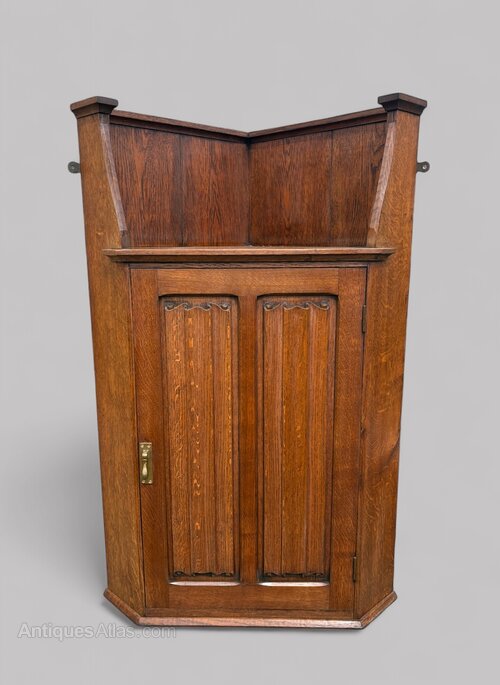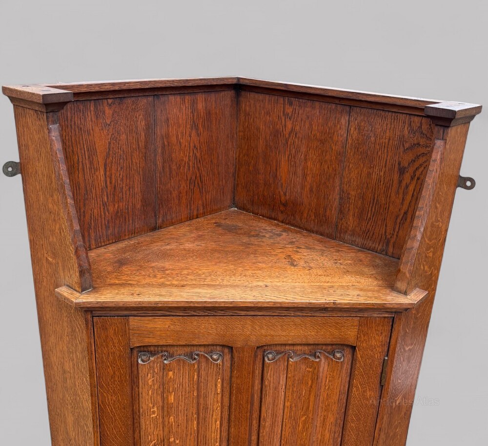 Arts & Crafts Oak Corner Cabinet Linenfold Panel