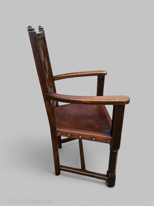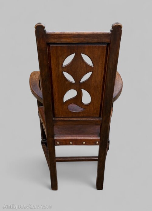 Gothic Revival Arts & Crafts Oak Open Armchair