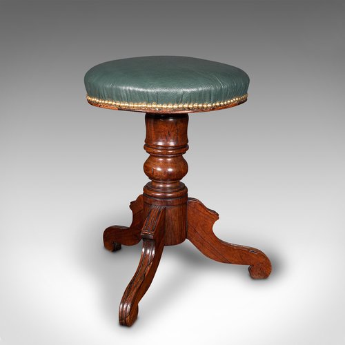 This is an antique piano stool. An English, rosewood and leather rising recital or dressing stool, dating to the early Victorian period, circa 1850.Delightfully crafted stool with quality leather covering