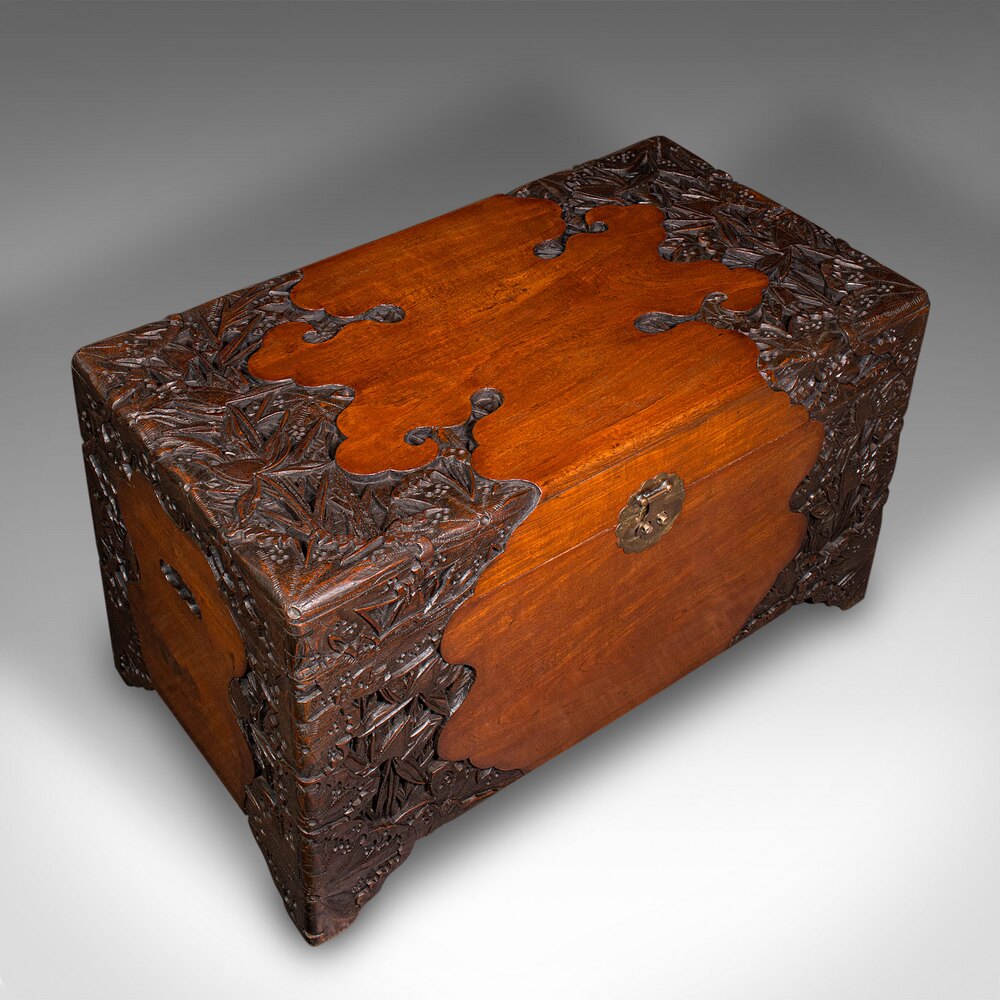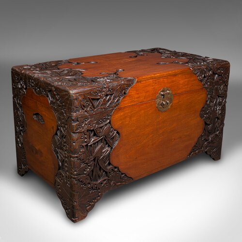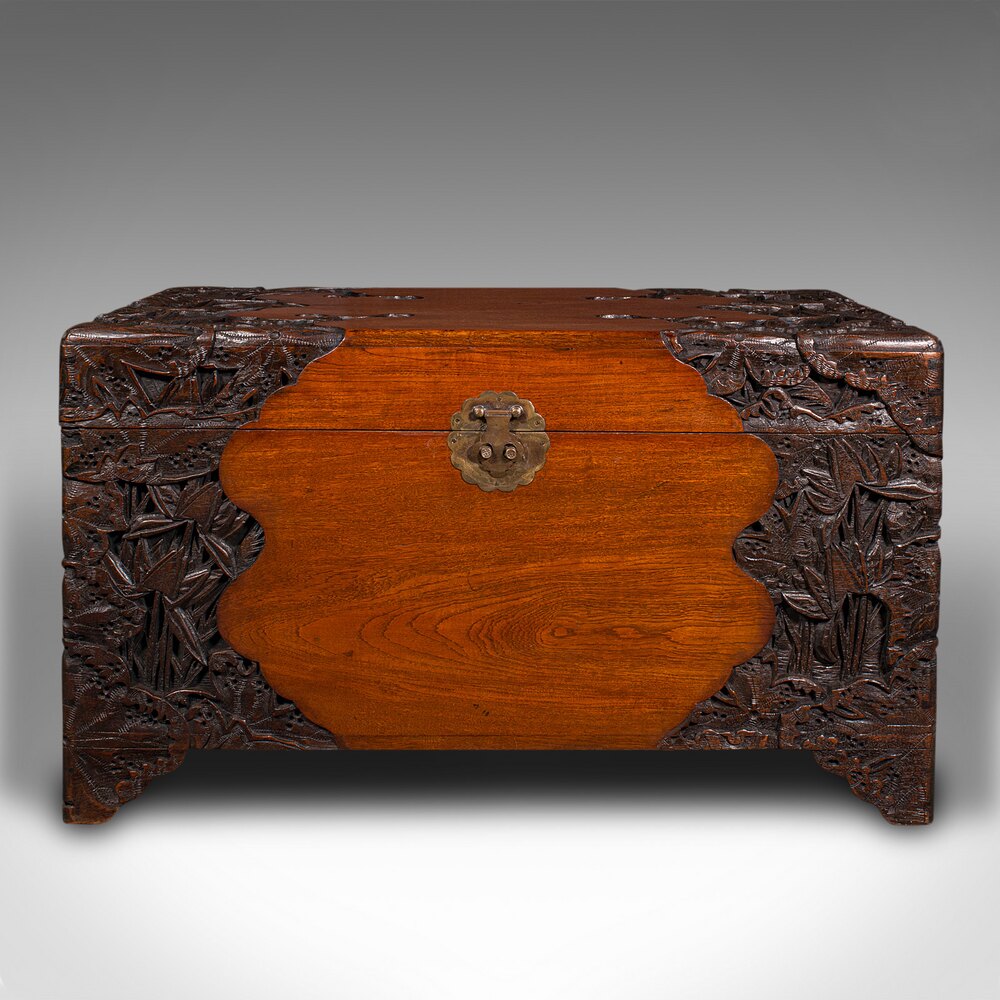 Large Vintage Carved Linen Chest, Oriental, Teak