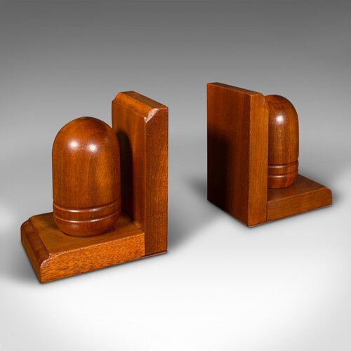 Our Stock # 24513This is a pair of vintage acorn bookends. An English, mahogany decorative book rest, dating to the mid 20th century, circa 1960.