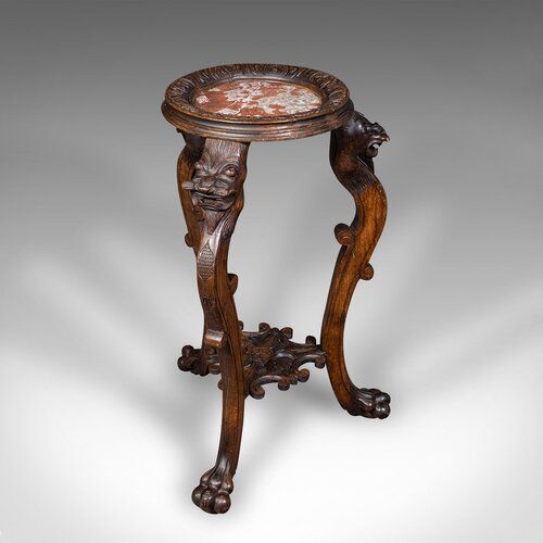 Vintage Jardiniere Stand, Oriental, Beech, Marble