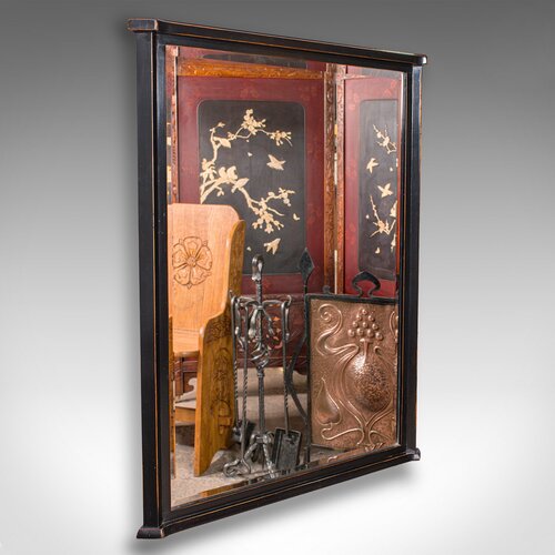 Large Vintage Overmantle Mirror, English, Ebonised