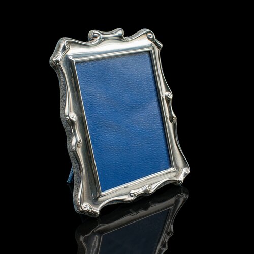 Our Stock # 25457This is a charming small vintage picture frame. An English, silver plated photo display, dating to the Art Deco period, circa 1930. With classic proportions and elegant materials, it makes a refined addition to any desk, dresser or display shelf.