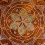 Circular top adorned with a charming coral bead motif, displaying naive artistry