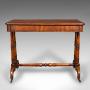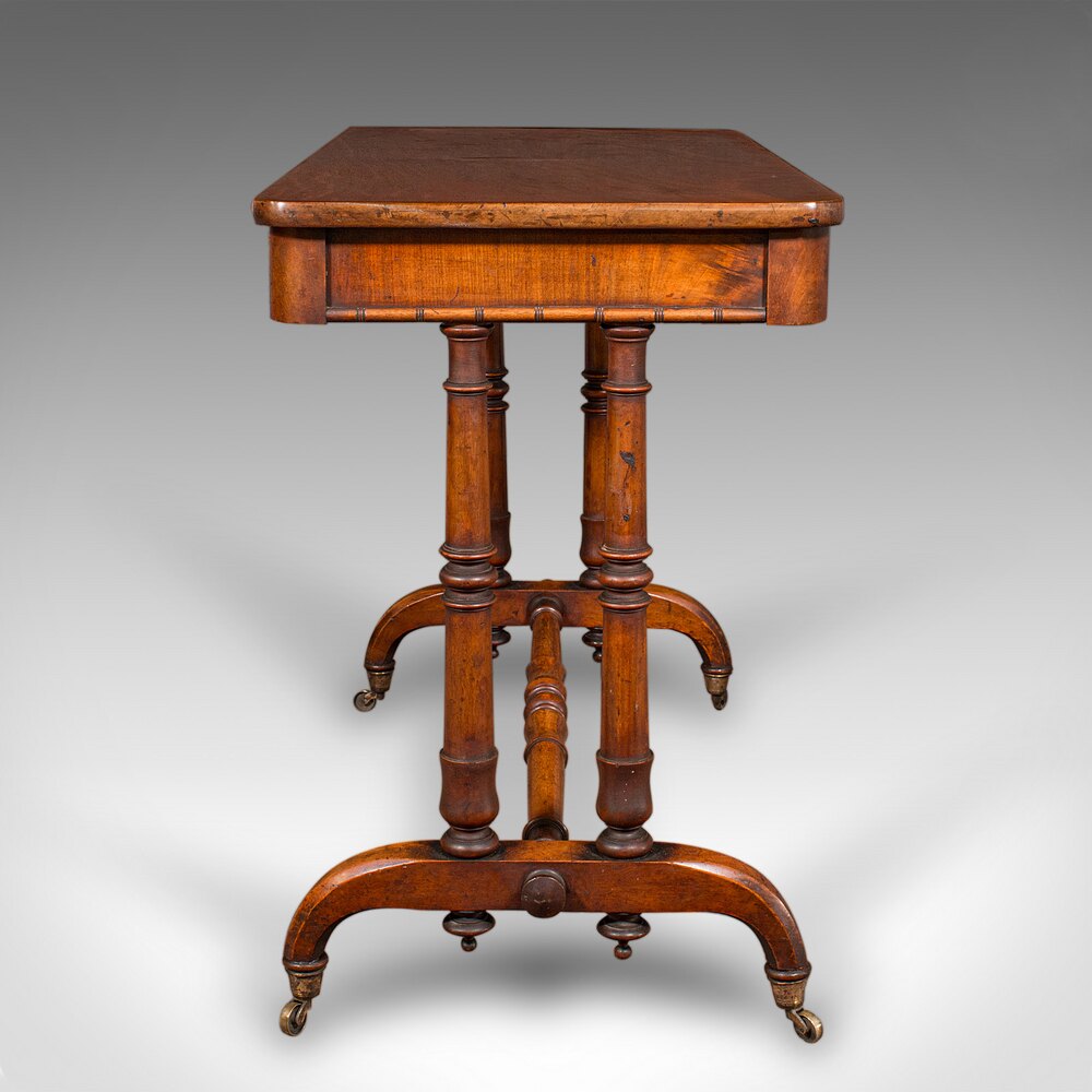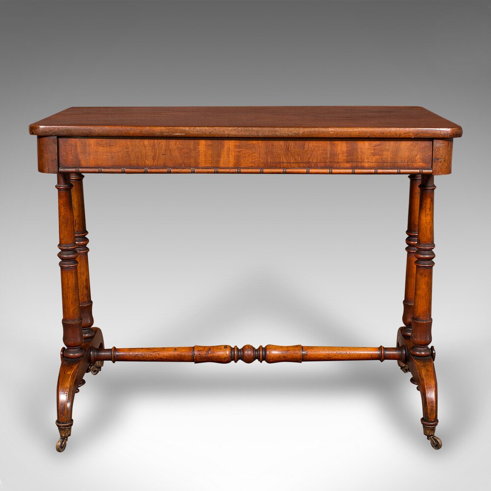 Our Stock # 25554This is an antique hallway side table. An English, flame mahogany portico table or writing desk, dating to the Regency period, circa 1820.