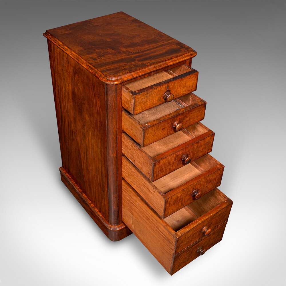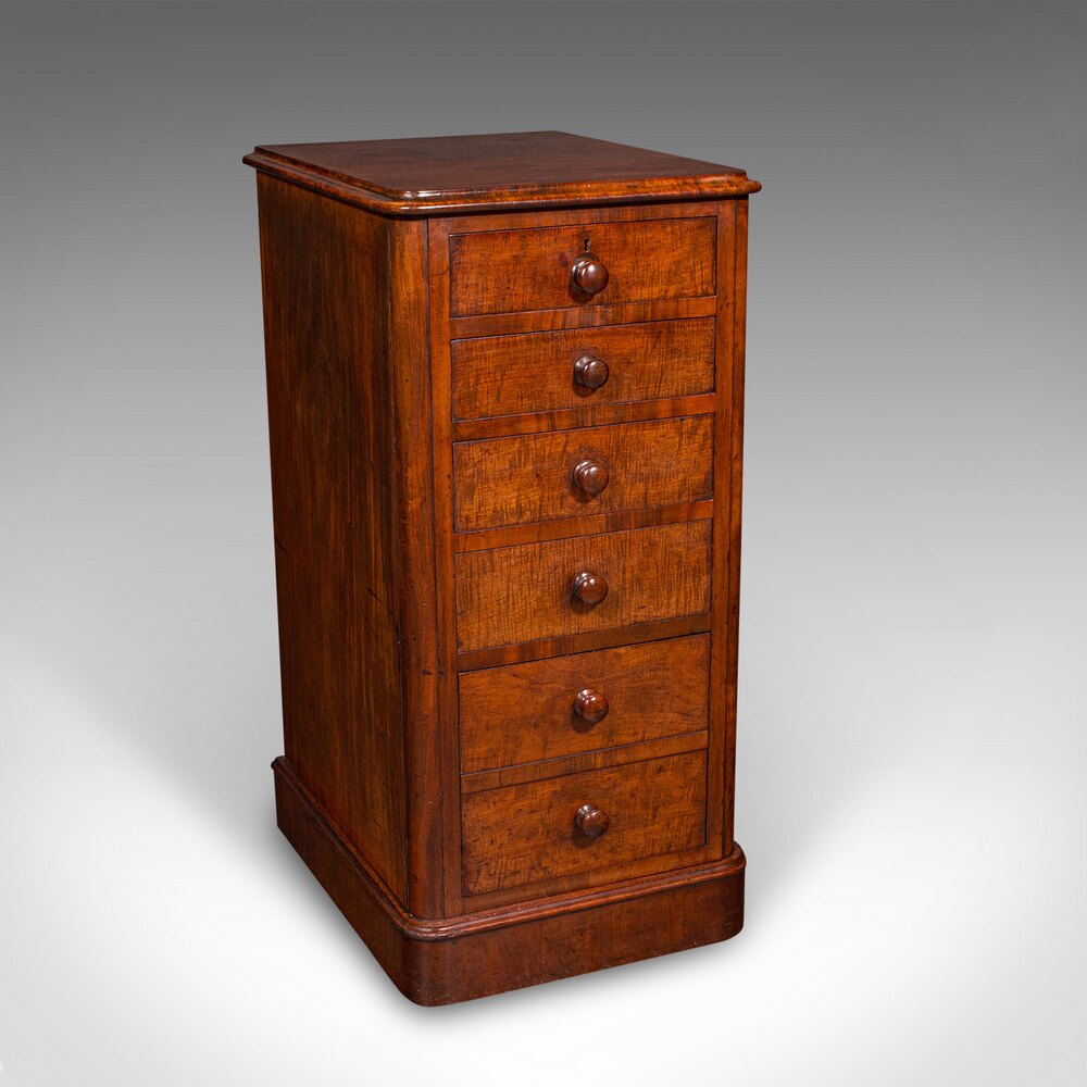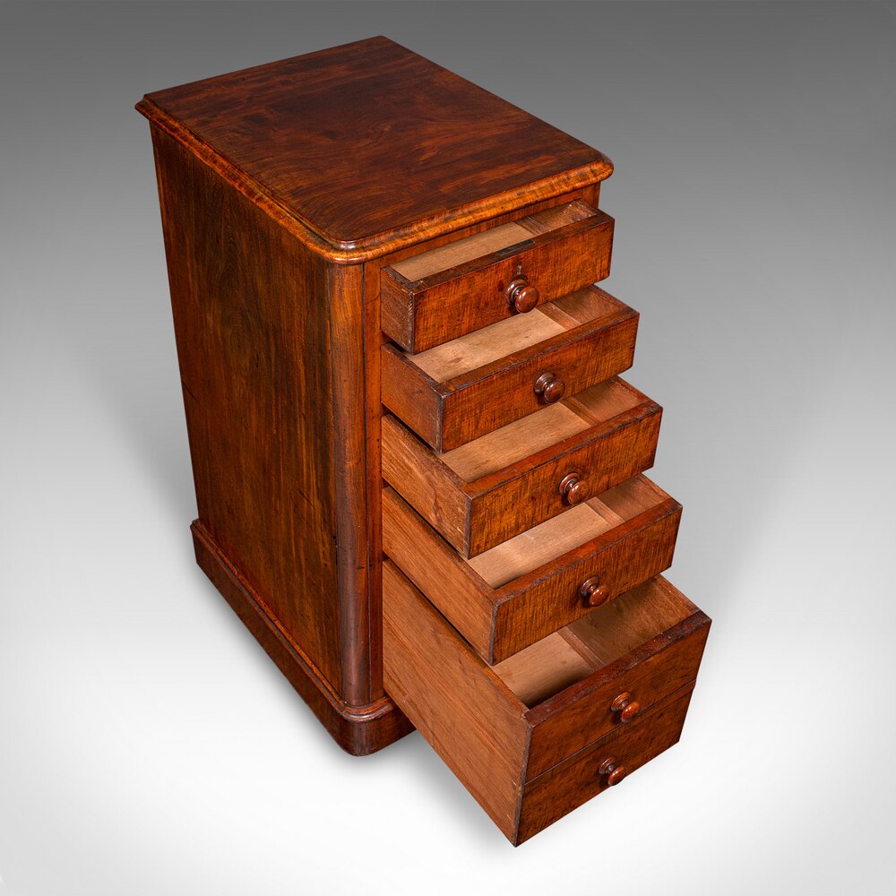 Our Stock # 25585This is a pair of antique nightstands. An English, mahogany bank of drawers or bedside pedestals, dating to the mid Victorian period, circa 1860.