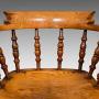 Eight oblique turned spindles provide sturdy support to the back and arms