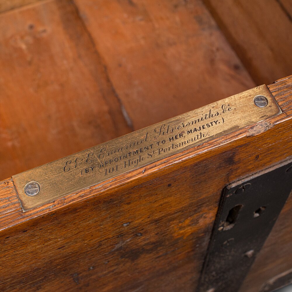 Top edge dressed with a maker’s plaque for E & E Emanuel, Silversmiths of Portsmouth