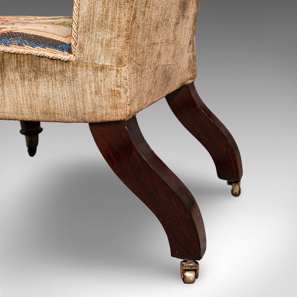 Our Stock # 25962This is an antique prayer chair. An English, upholstered ecclesiastical prie dieu seat, dating to the Regency period, circa 1820.