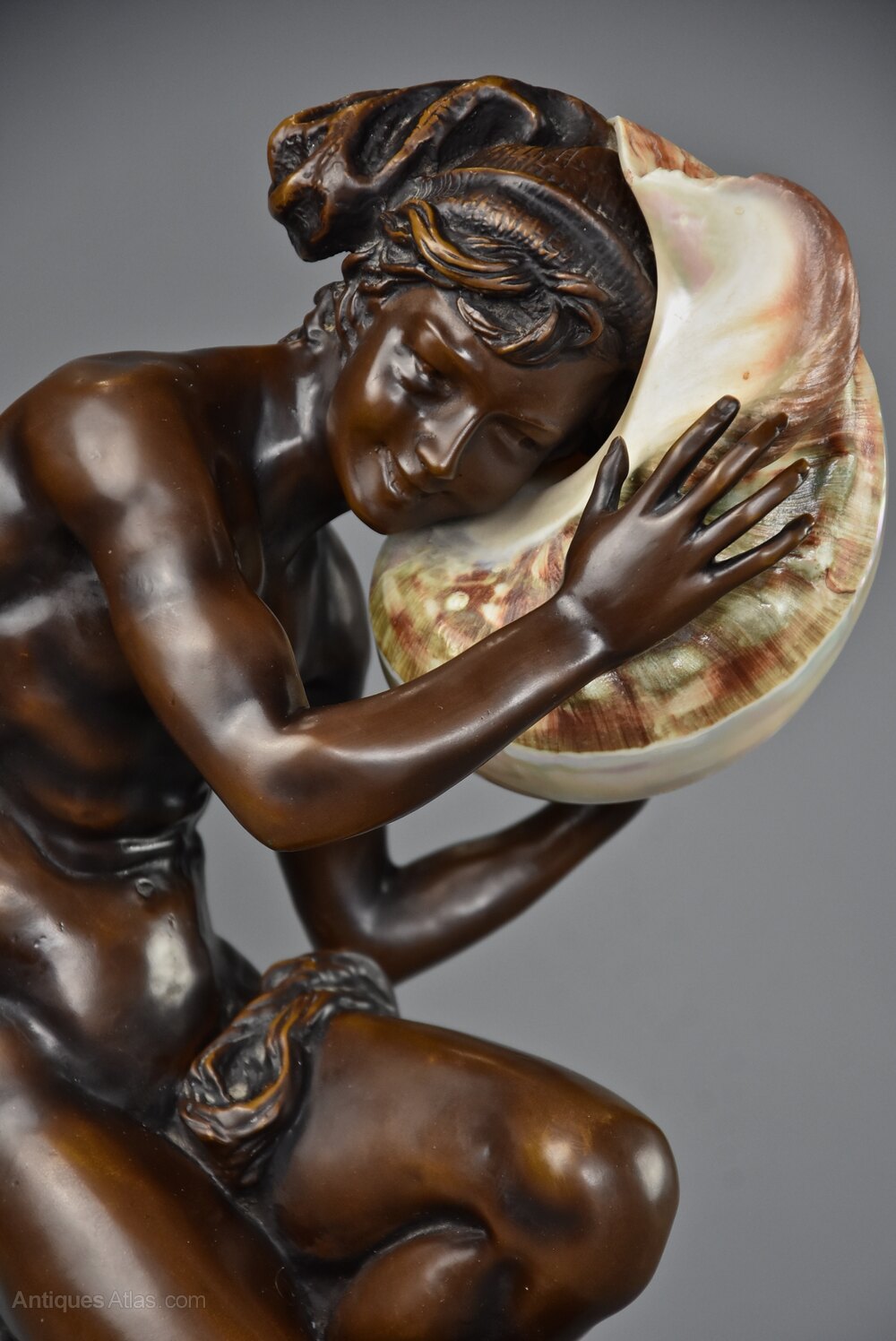 While studying in Rome he submitted a plaster version of the ‘Pecheur Napolitain a la coquille’ or the ‘Neapolitan Fisherboy’ in 1858 to the French Academy. He carved the marble version several years later and showed this at the Salon exhibition in 1863 where it was purchased for Napoleon III’s Empress Eugenie.