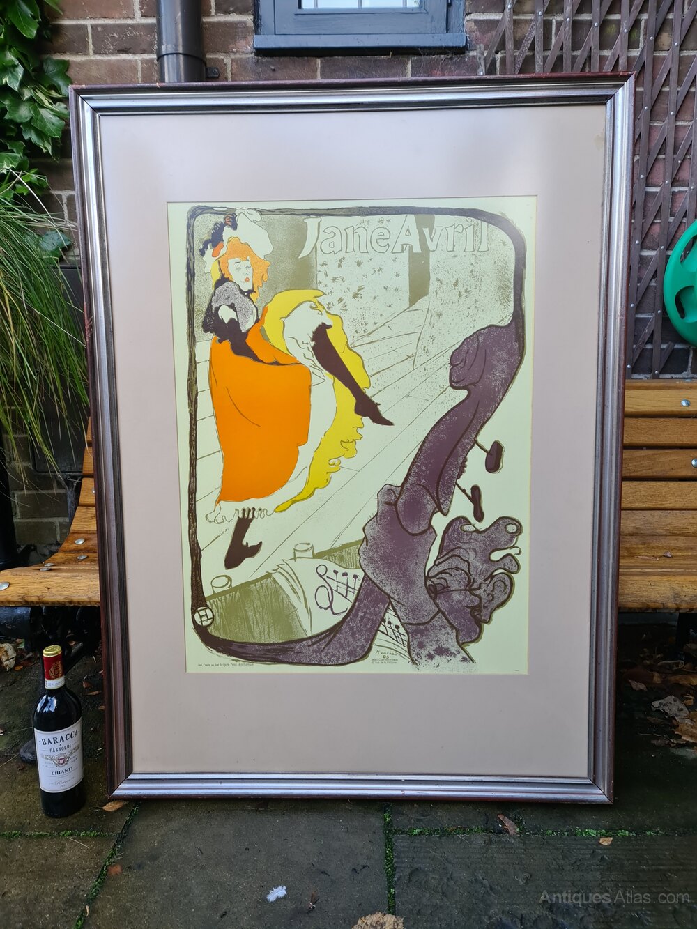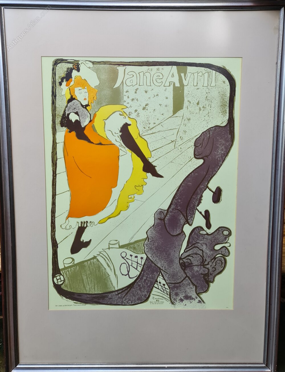 REDUCED...Retirement Sale!...REDUCEDLarge French vintage poster titled 'Jane Averil". Illustrating a cabaret dancer, good quality frame and mounting. Another good quality large interiors piece.